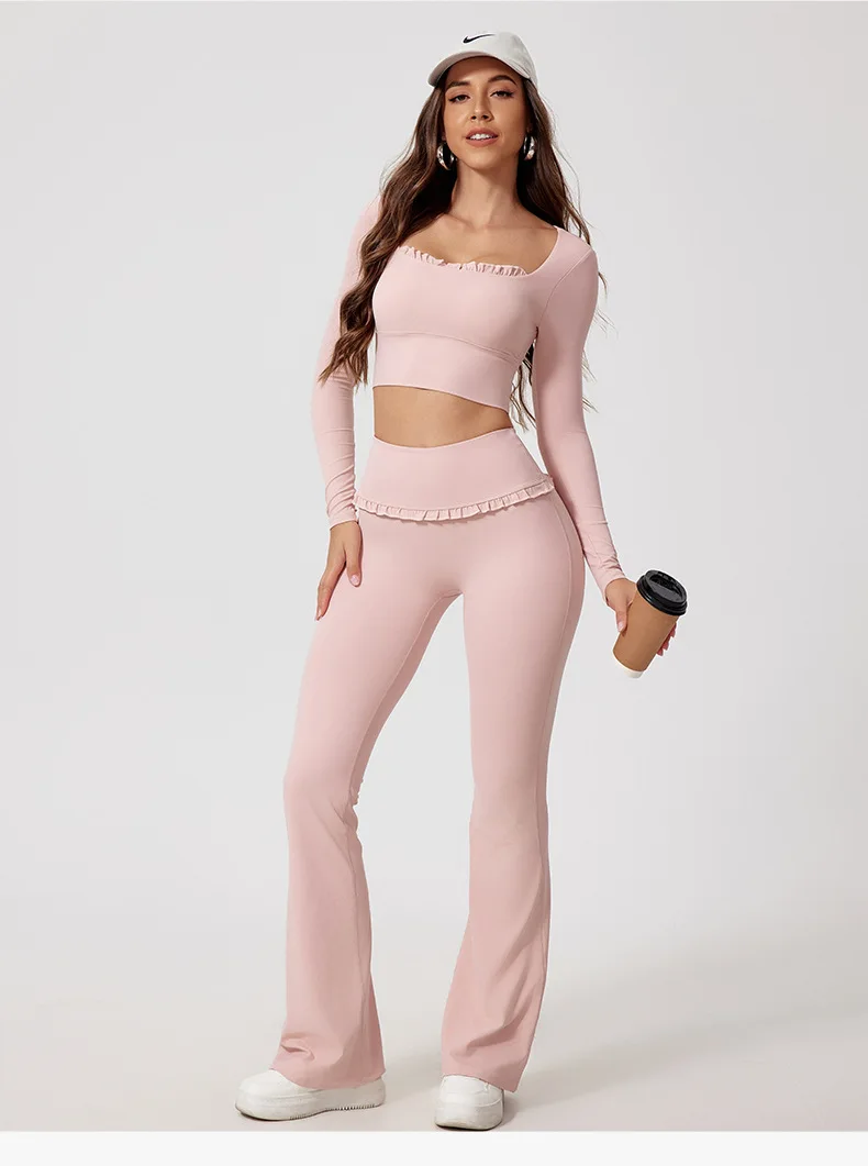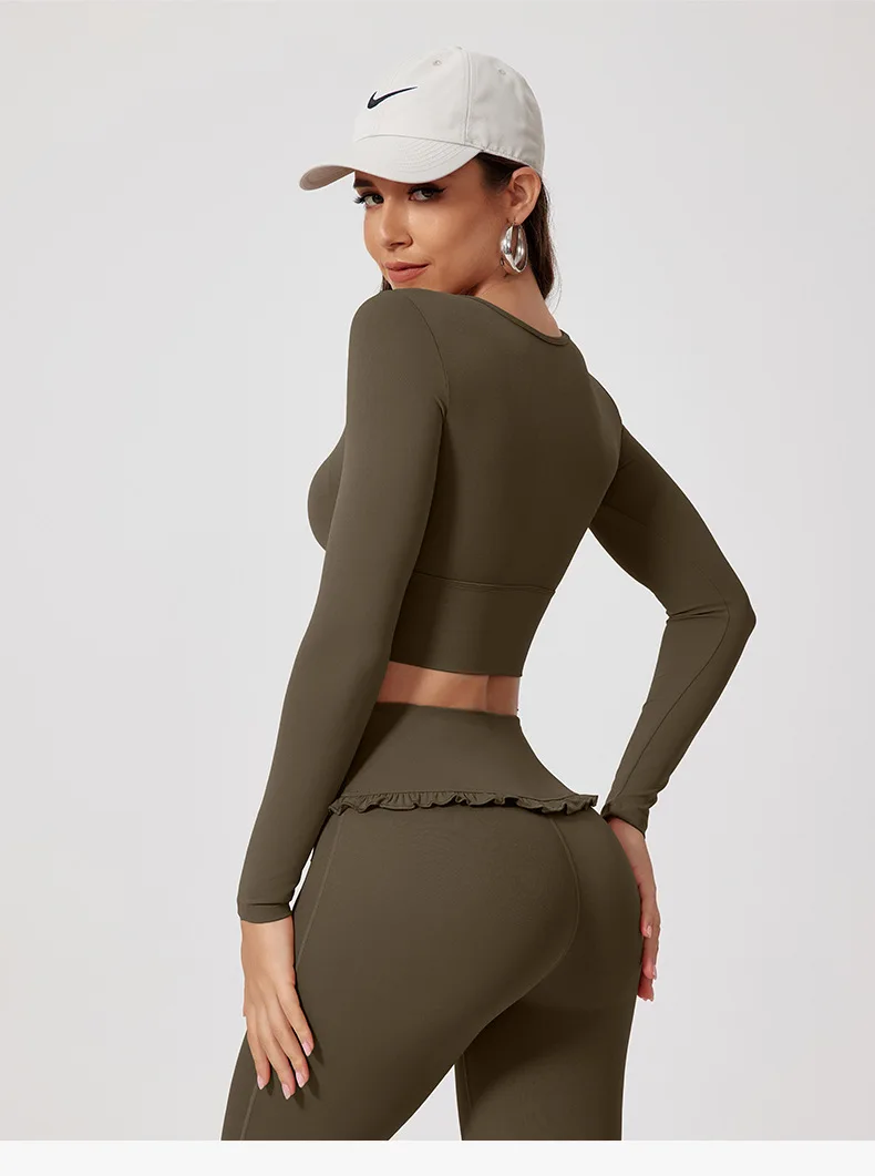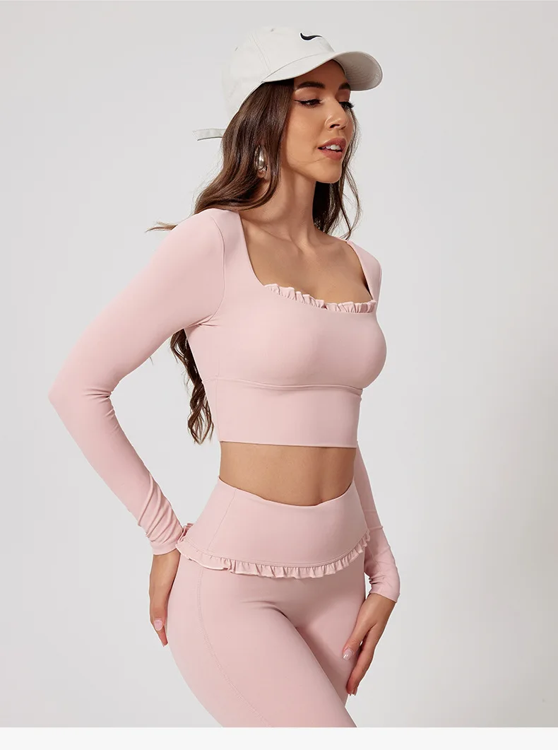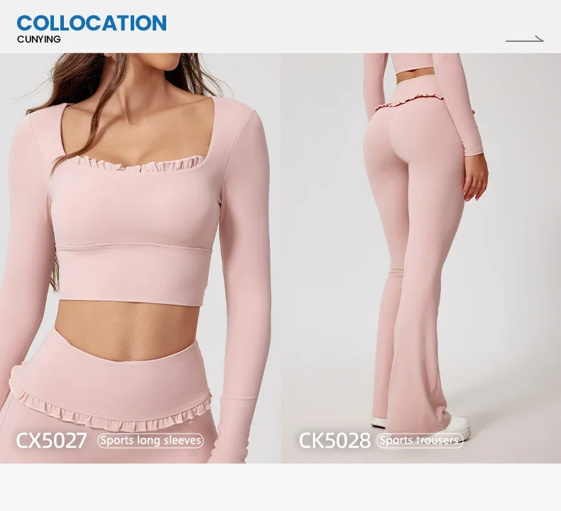 Ctenkevet - Conjunto de 2 piezas de camiseta de manga larga de secado rápido para mujer, para gimnasio, yoga, deportes al aire libre, traje deportivo de dos piezas