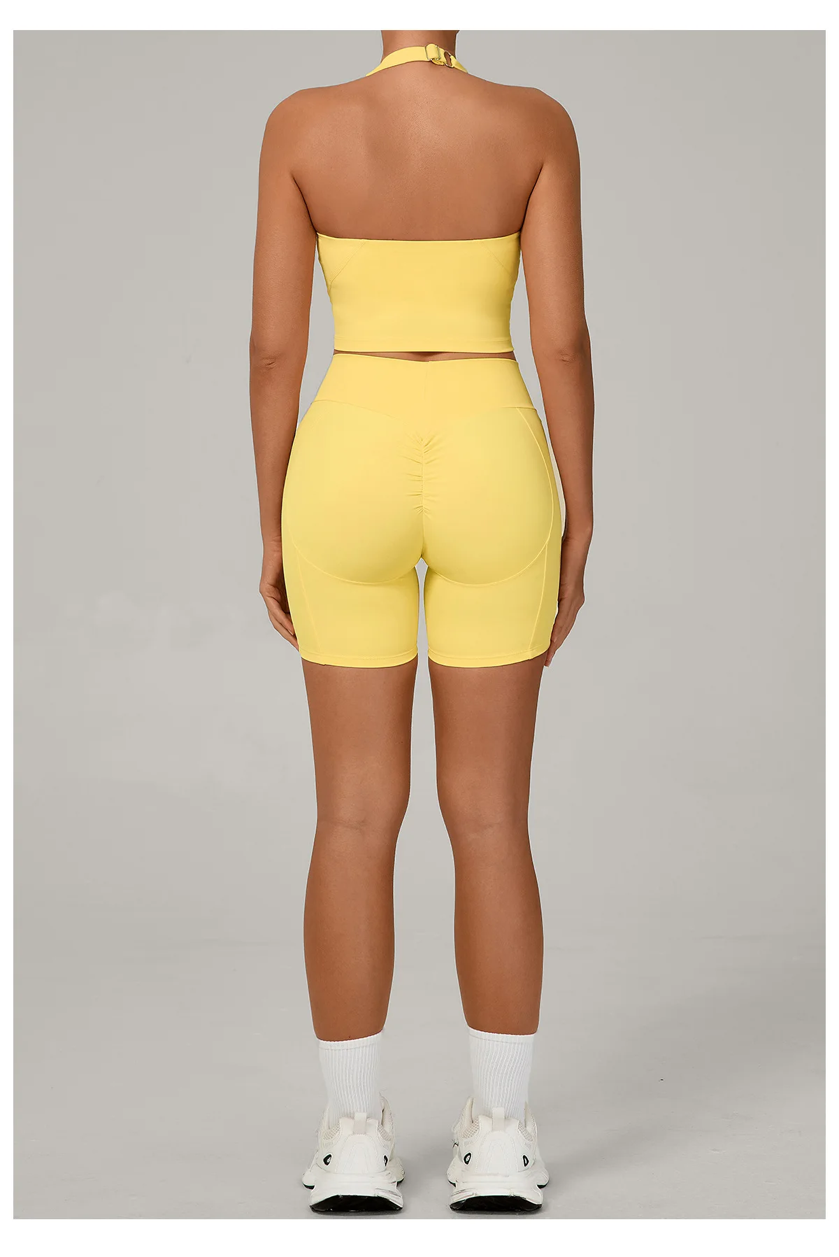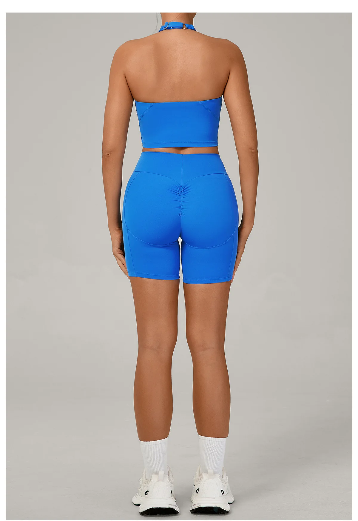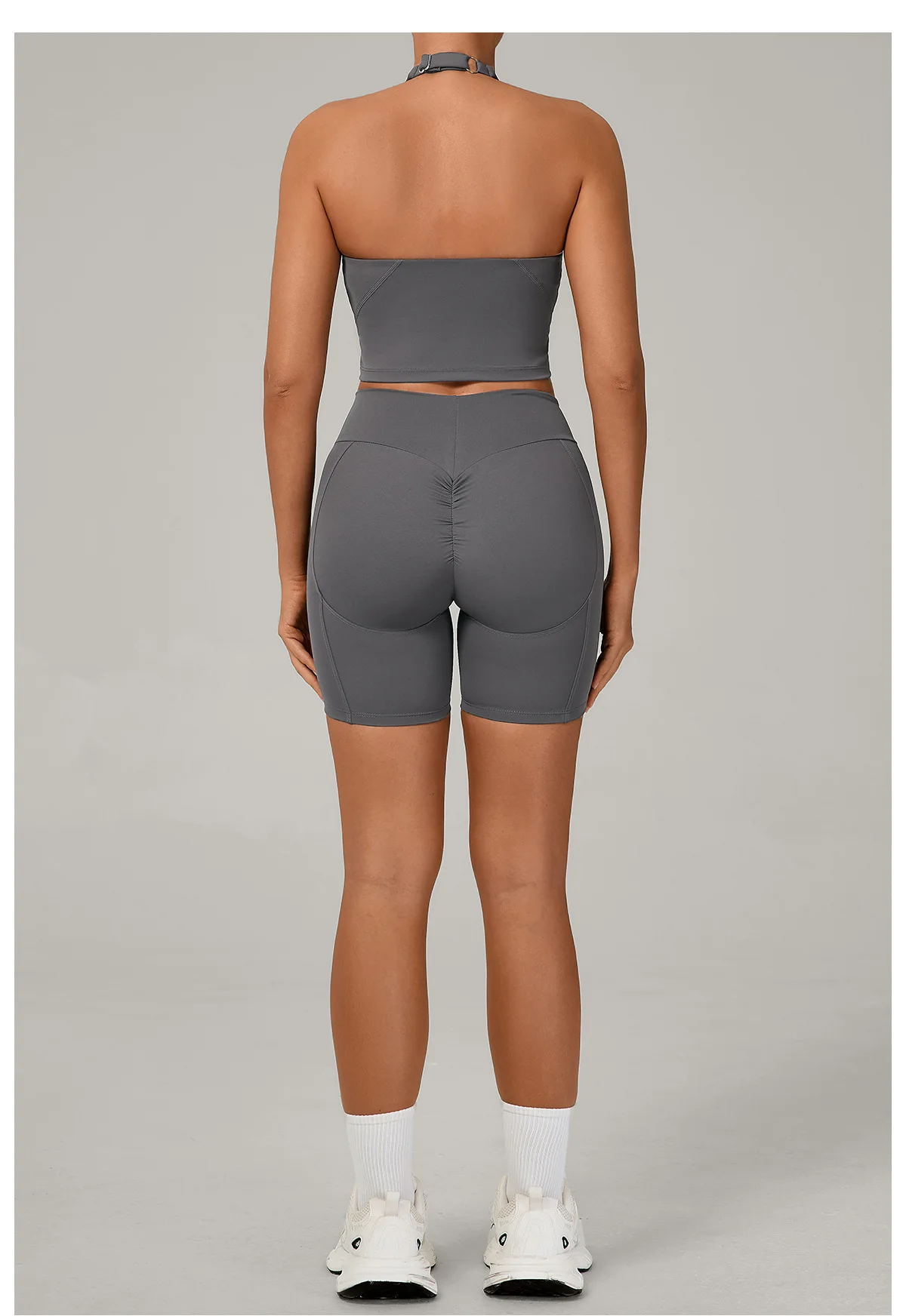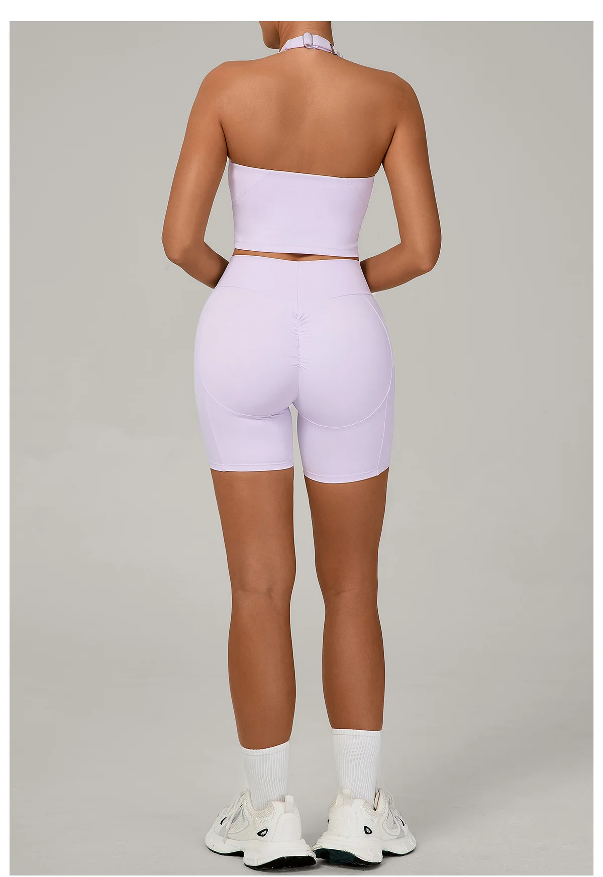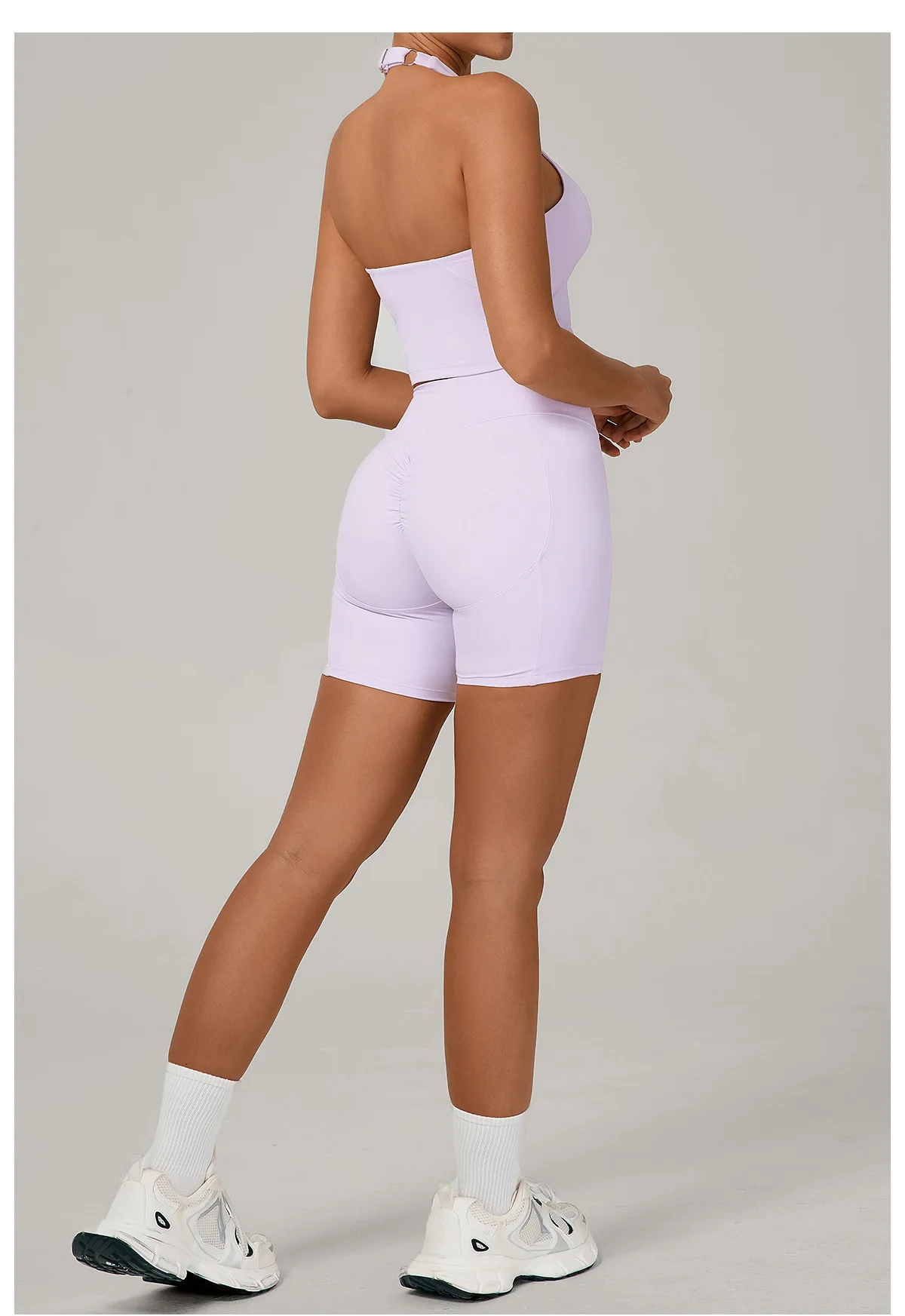 Ctenkevet - Conjunto de 2 piezas de sujetador halter sin espalda para mujer, ropa deportiva de secado rápido para gimnasio, conjunto deportivo femenino de dos piezas con pantalones cortos