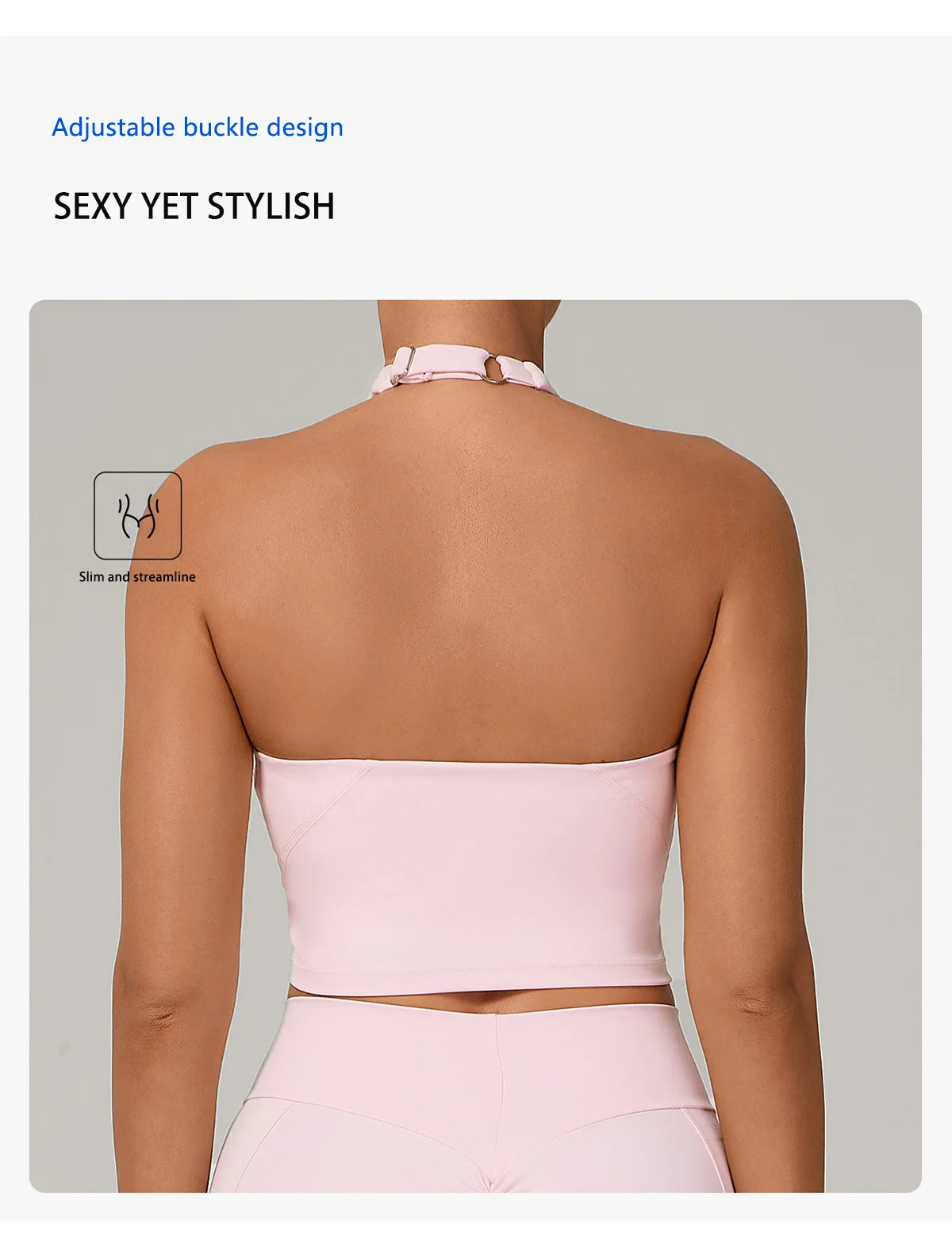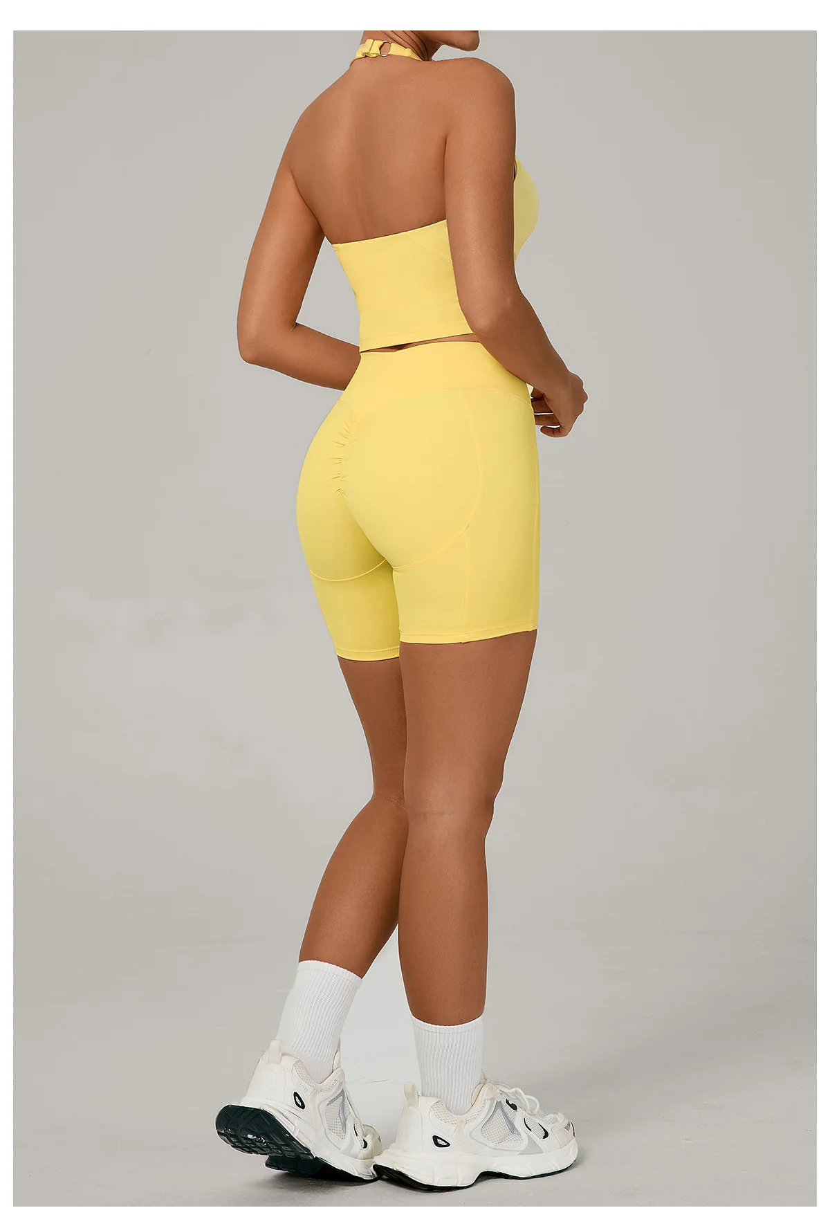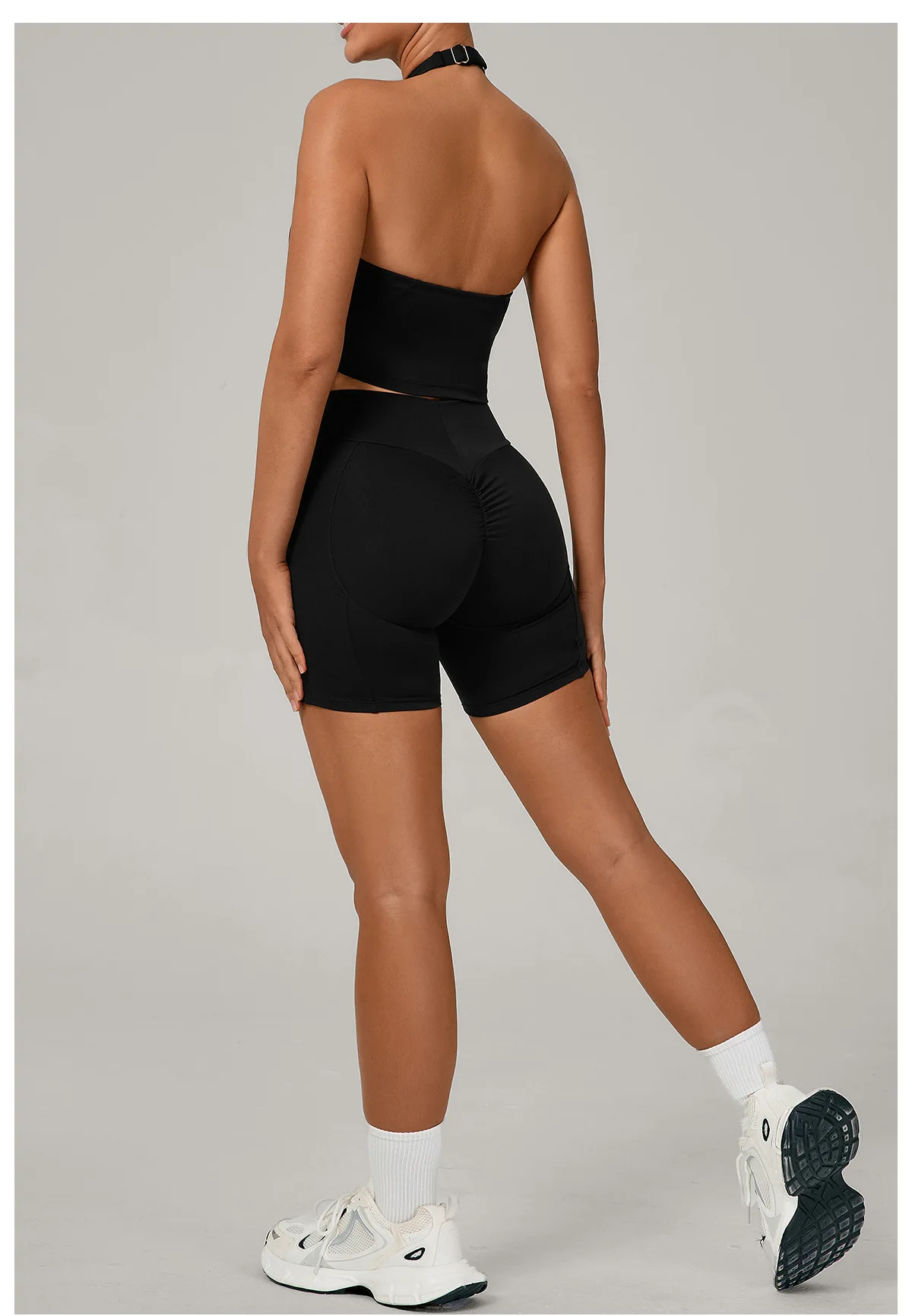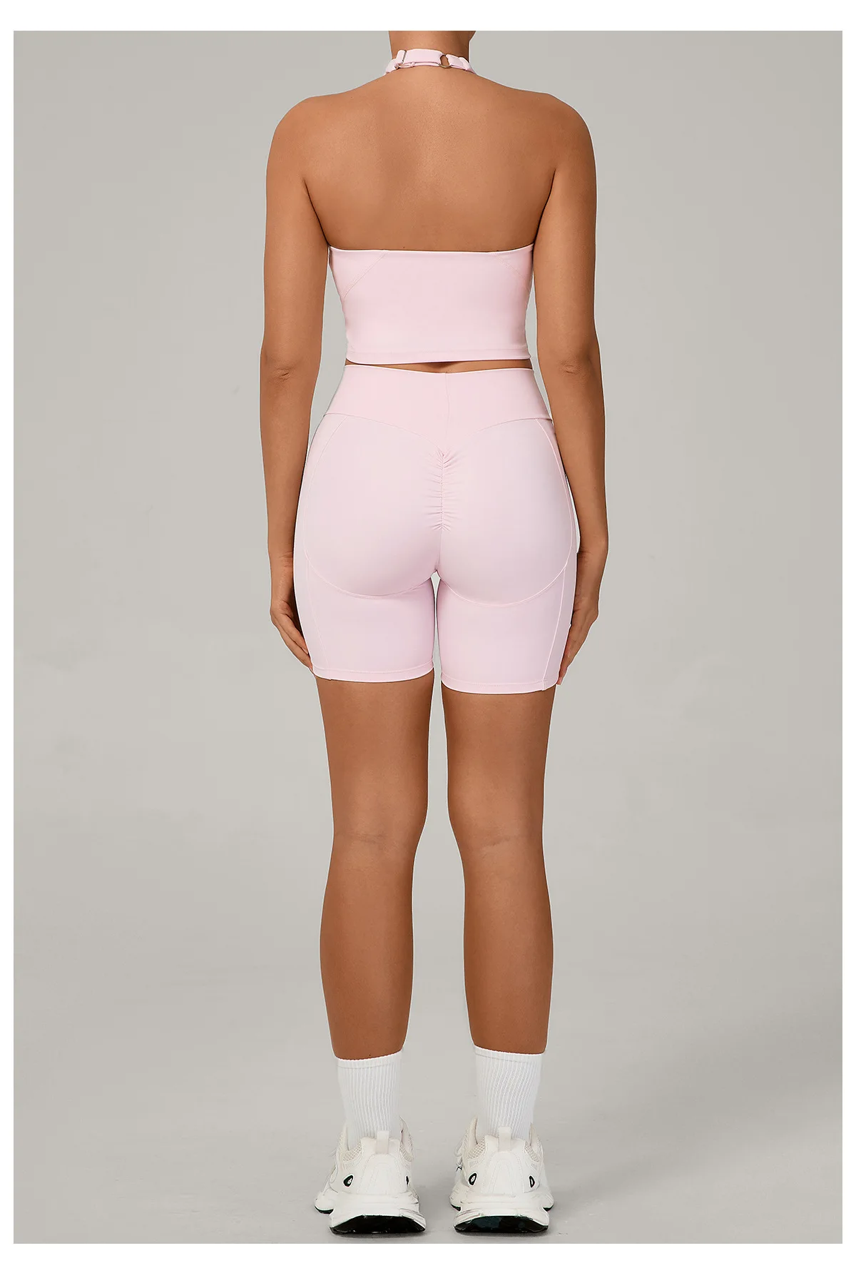 Ctenkevet - Conjunto de 2 piezas de sujetador halter sin espalda para mujer, ropa deportiva de secado rápido para gimnasio, conjunto deportivo femenino de dos piezas con pantalones cortos
