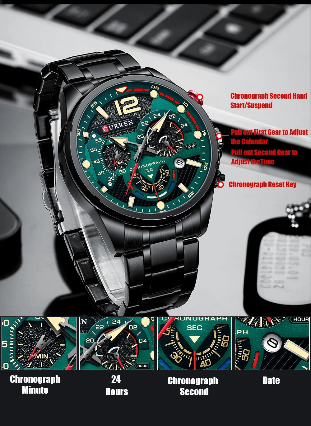 Relojes de cuarzo de moda CURREN para hombre, reloj de pulsera deportivo informal con esfera cronógrafo de acero inoxidable y luminoso