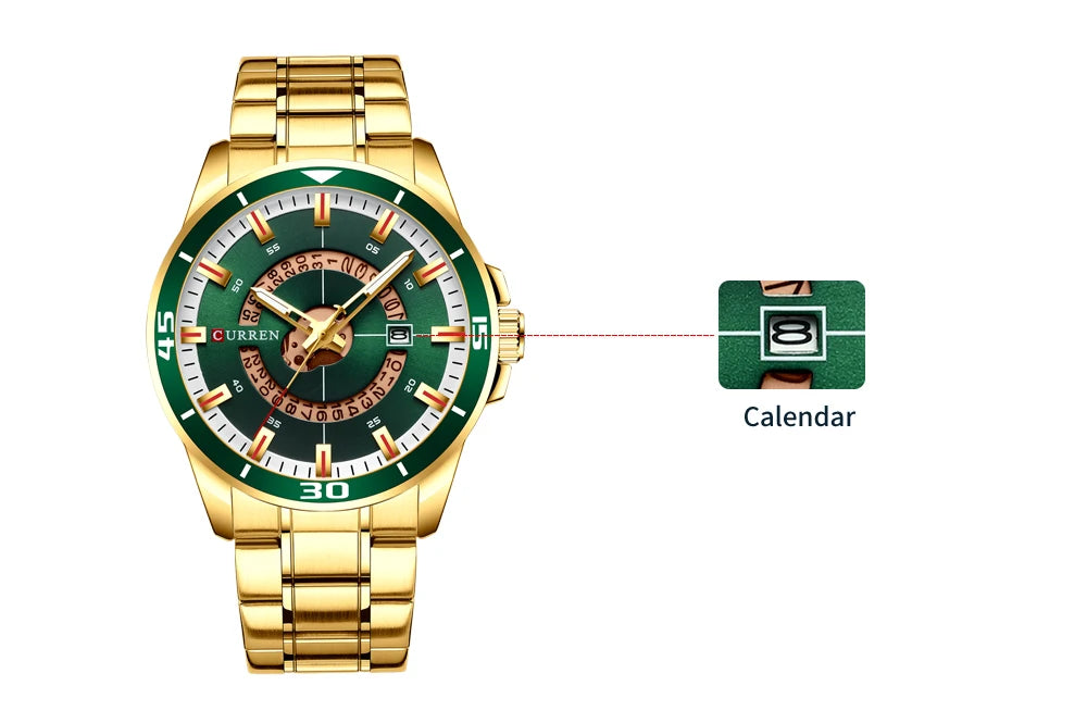 Relojes CURREN para hombre, relojes de negocios de moda para hombre con correa de acero inoxidable, reloj de cuarzo resistente al agua para hombre con fecha automática