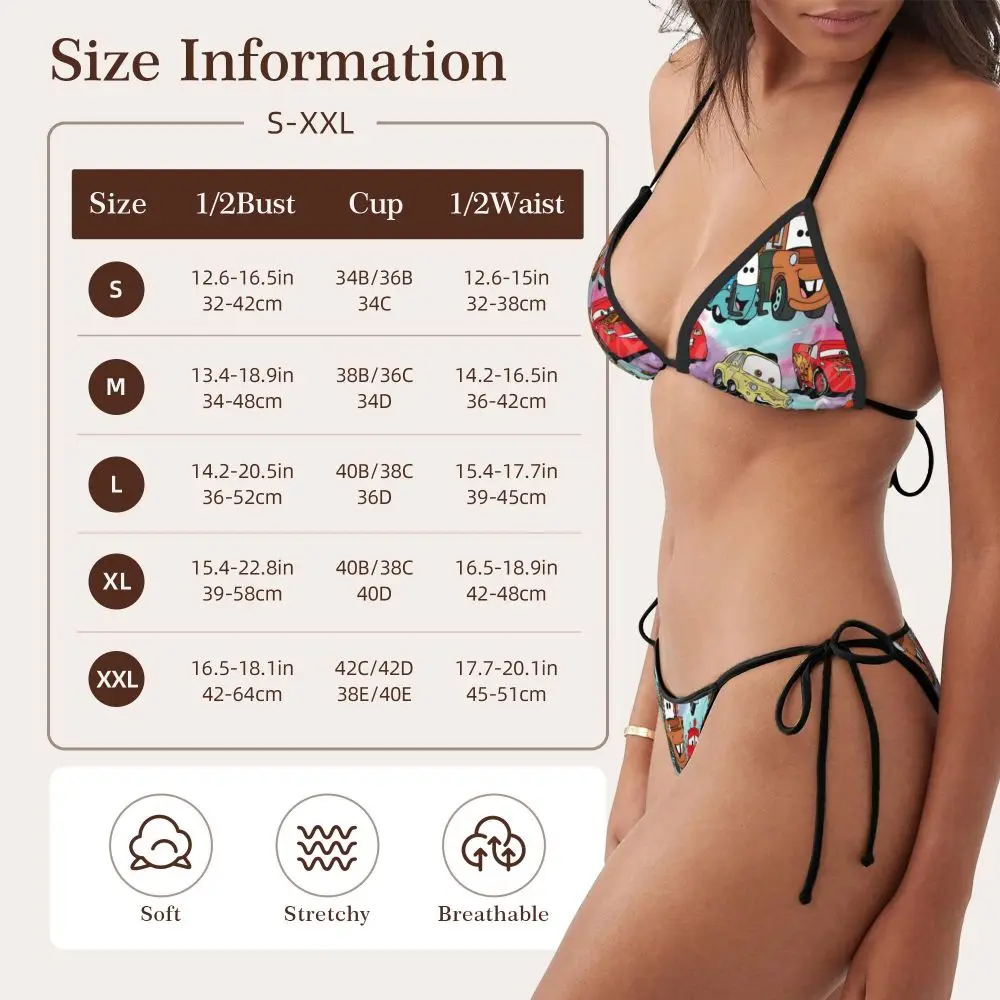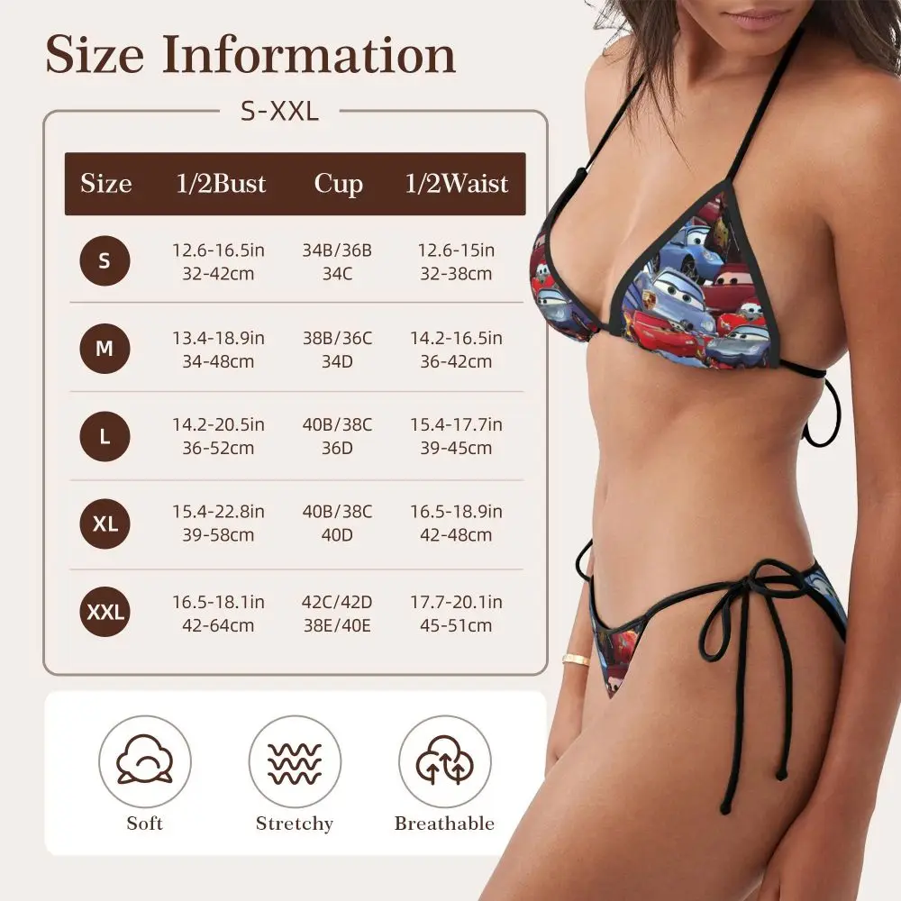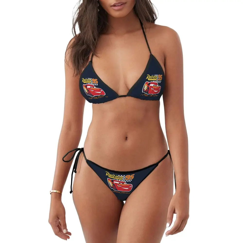 Conjunto de bikini personalizado de Rayo McQueen, traje de baño de dos piezas, bikinis de coches para mujer, conjuntos de bikini triangulares sexys para mujer, traje de baño
