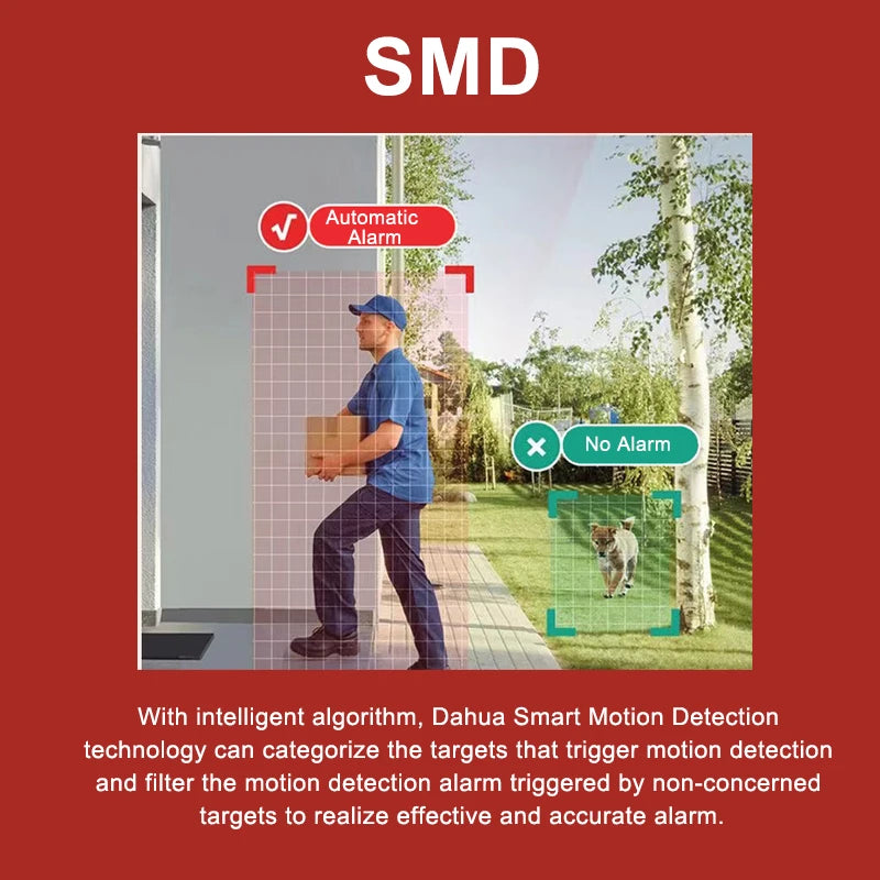 Gracias a un algoritmo inteligente, la tecnología de detección de movimiento inteligente de Dahua puede categorizar los objetivos que activan la detección de movimiento y filtrar las alarmas de detección de movimiento activadas por objetivos irrelevantes para lograr