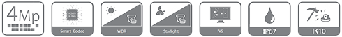 > RoI, SMART H.264+/H.265+, codificación flexible, aplicable a diversos entornos de ancho de banda y almacenamiento.
