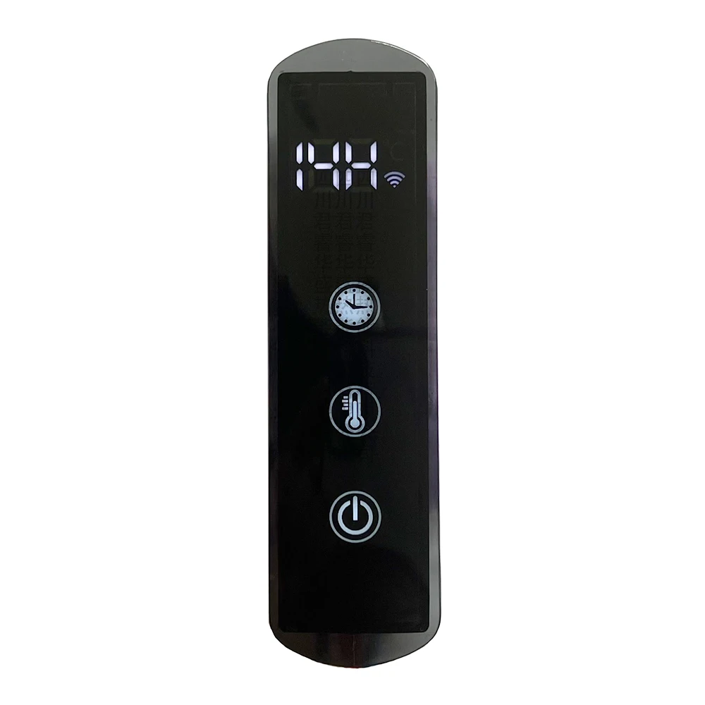 Dispone de tres botones táctiles y una pantalla. Los tres botones son: interruptor, temporizador y control de temperatura.