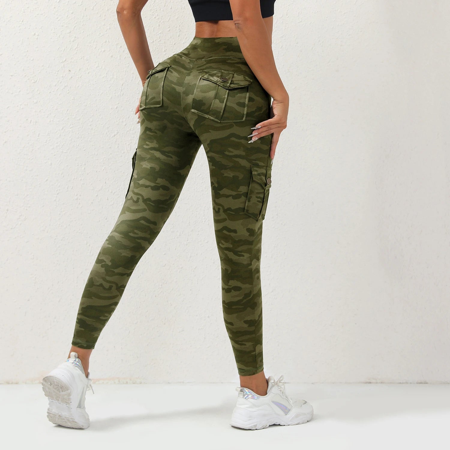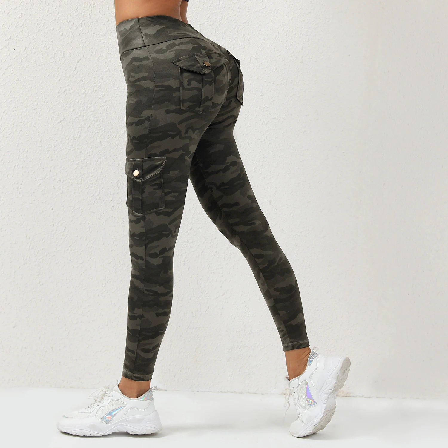 Pantalones de yoga con estampado digital, con bolsillo, sin costuras, tipo leggings de camuflaje para fitness, elásticos y ajustados para deporte.
