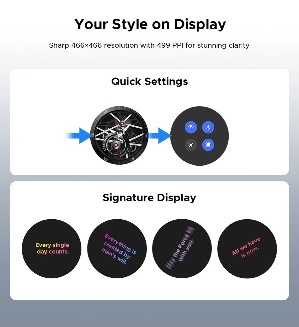 Pantalla trasera redonda multifuncional AMOLED de 1,32" y 60 Hz / 499 ppi