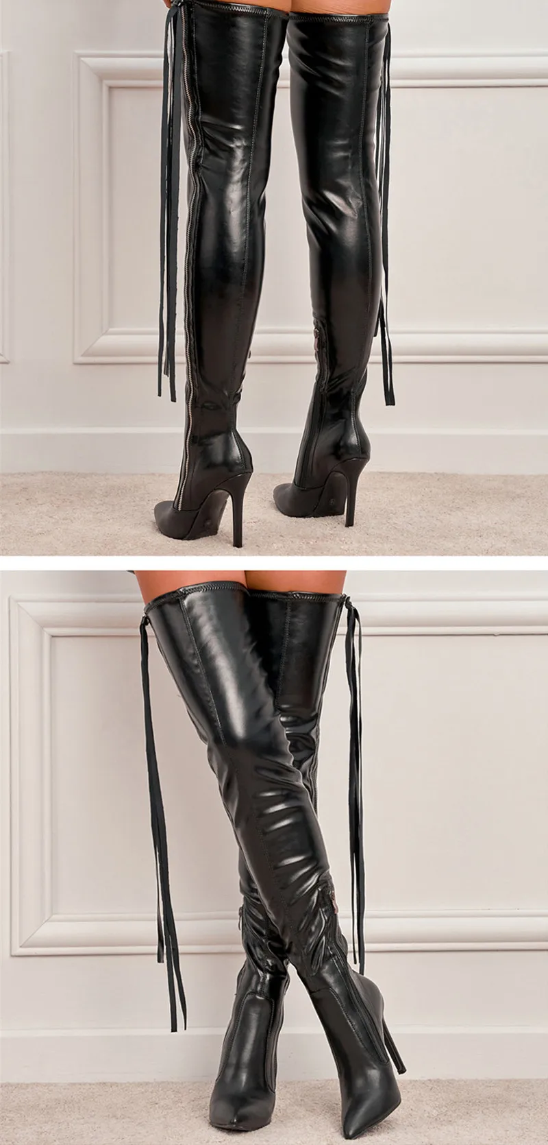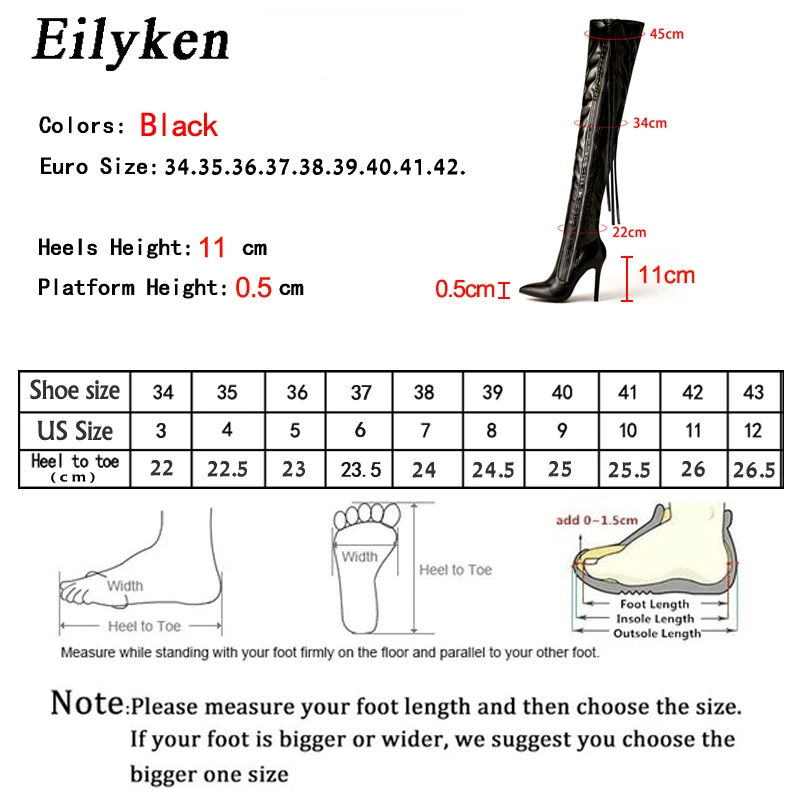 Botas por encima de la rodilla para mujer de Eilyken, zapatos de tacón alto, sexys, con punta puntiaguda y cremallera, botas largas de invierno para mujer