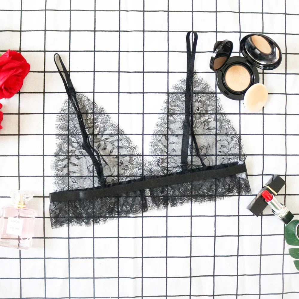 Ellolace Lencería sexy de encaje para mujer, conjunto de 3 piezas, sujetador transparente, conjunto de fiesta, lencería negra, body, conjuntos sexys