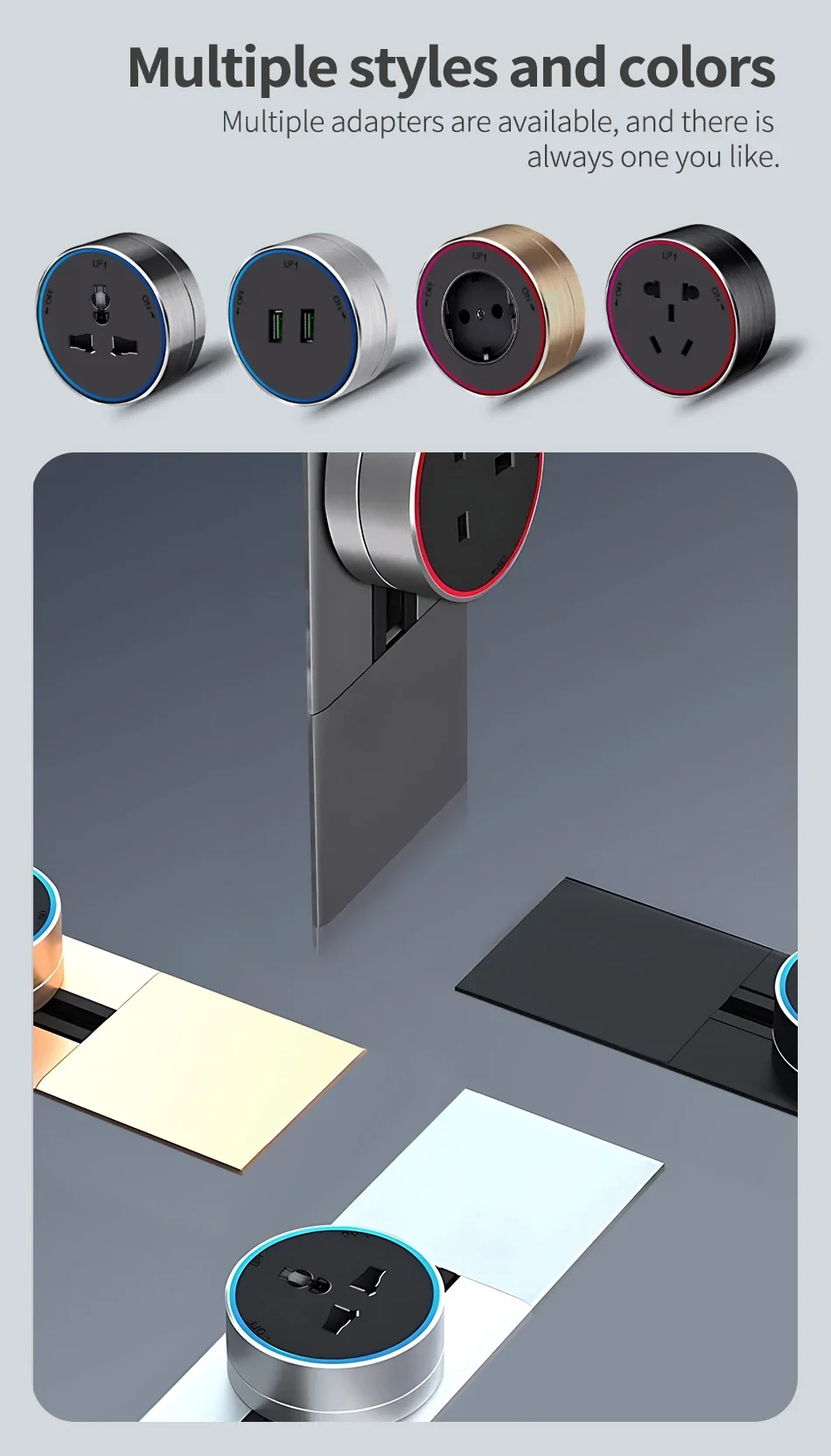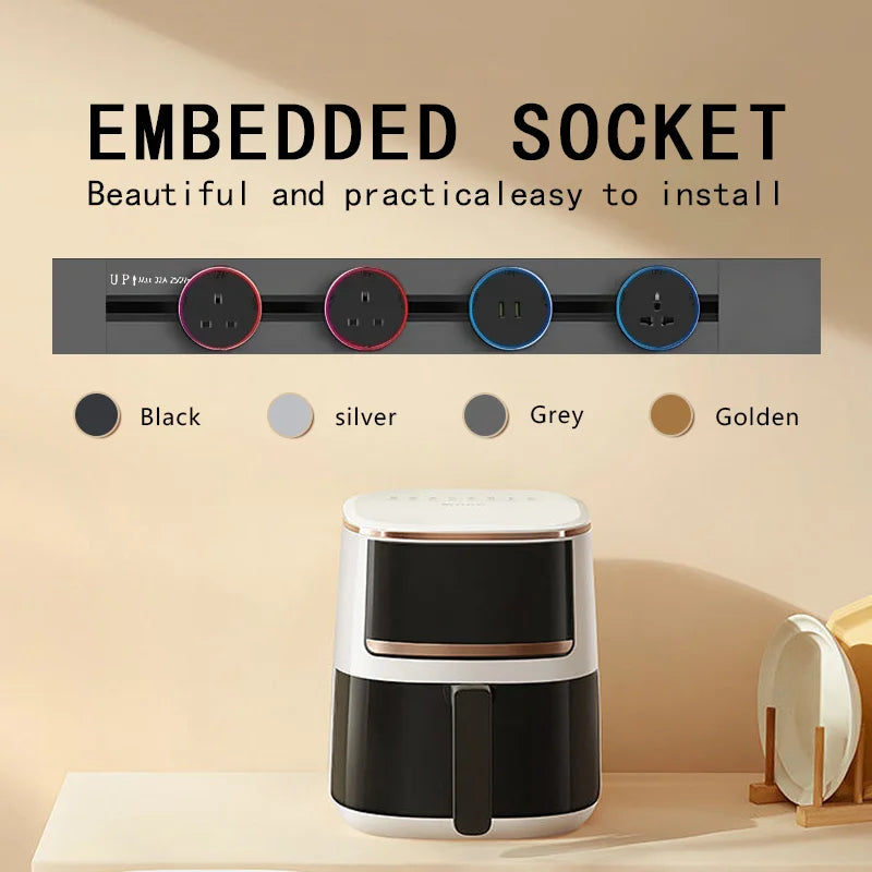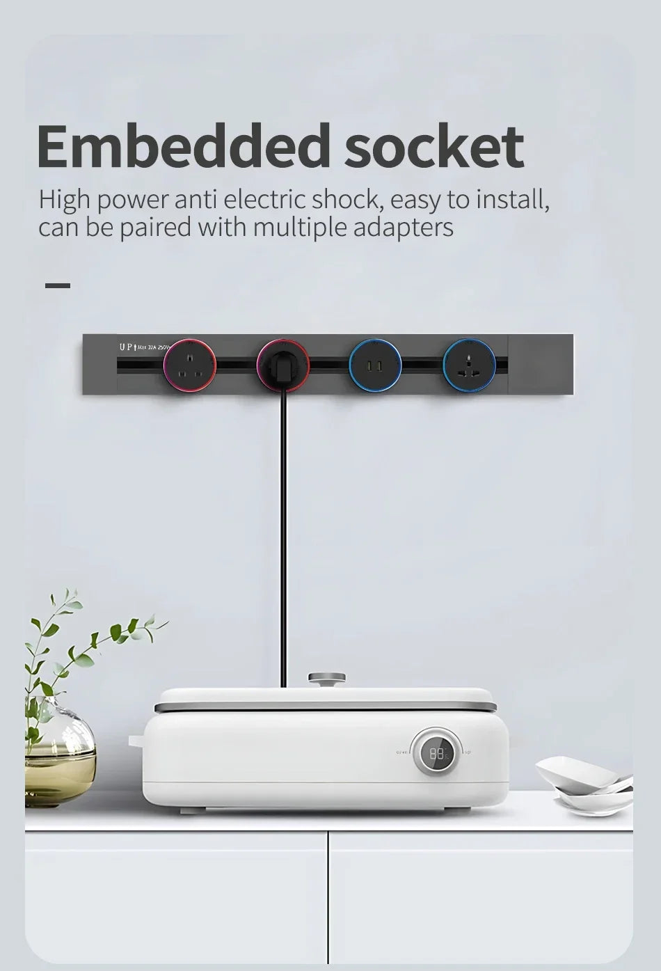 Enchufes de carril ultrafinos integrados, universales, UE, EE. UU., Reino Unido, USB, LED, adaptador eléctrico, riel para electrodomésticos inteligentes de alta gama