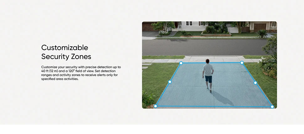 Personalice su seguridad con una detección precisa de hasta 40 pies (12 m) y un campo de visión de 120°.