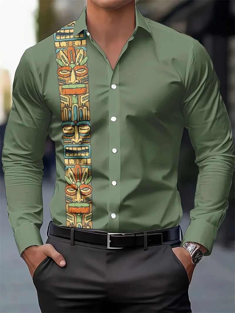 Camisa de hombre de moda, con lunares, solapa abotonada, estilo hawaiano veraniego, ideal para la ciudad o las vacaciones. Manga larga.