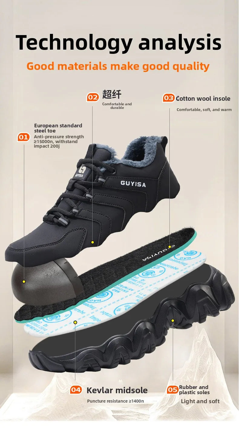 Zapatillas de seguridad con forro polar para hombre y mujer, botas de invierno con punta de acero, gruesas, cálidas, antiaplastamiento, para trabajo, tallas 36-46