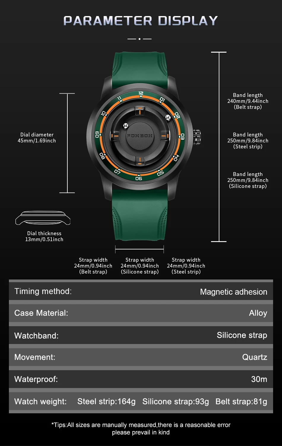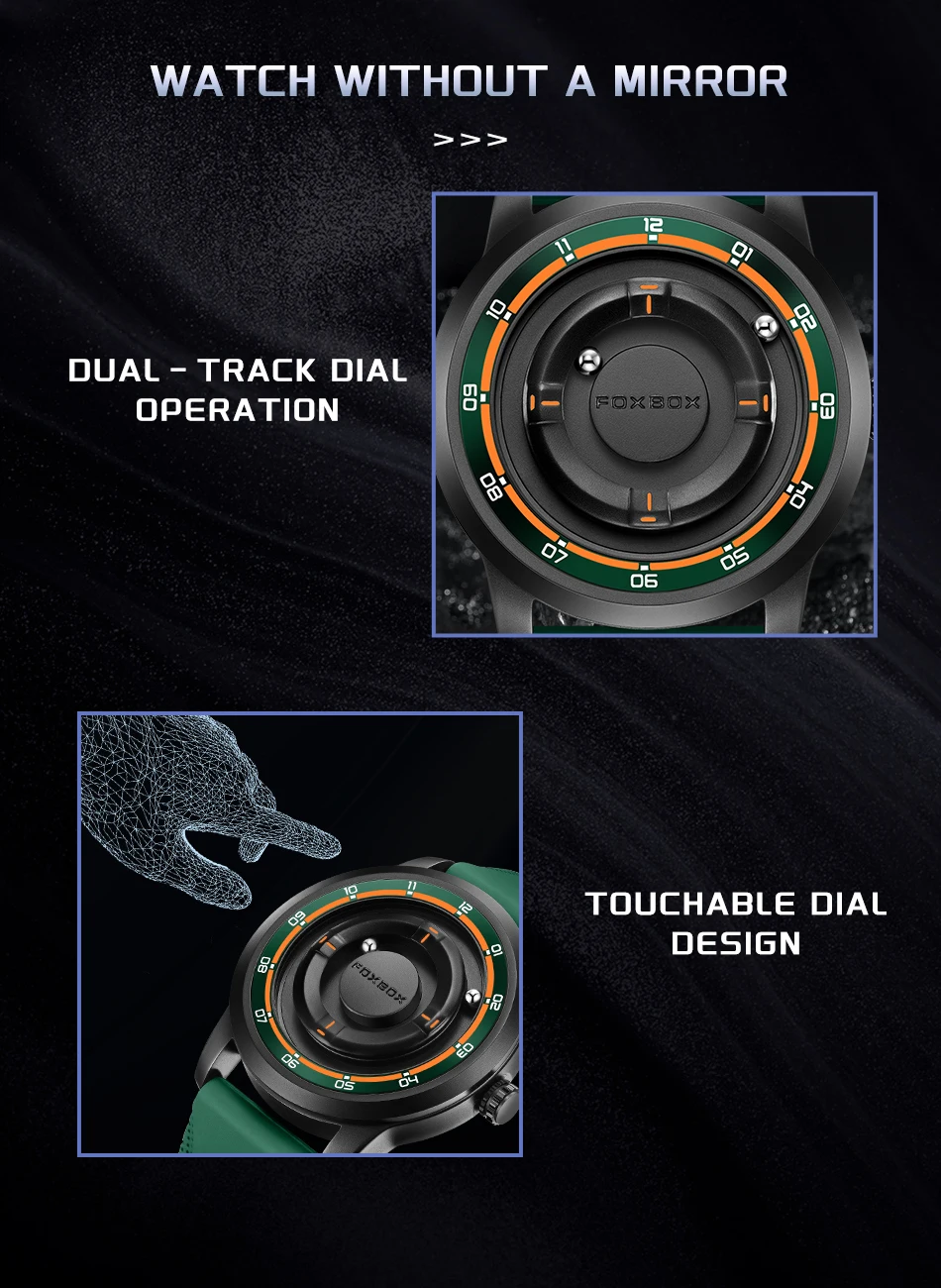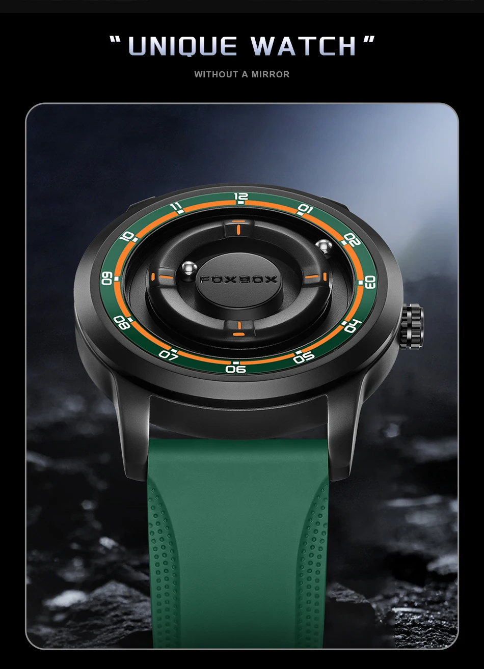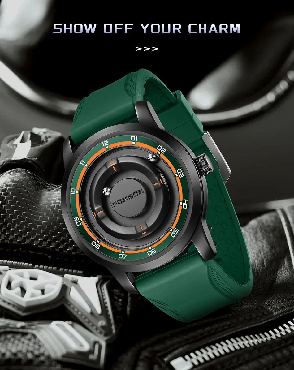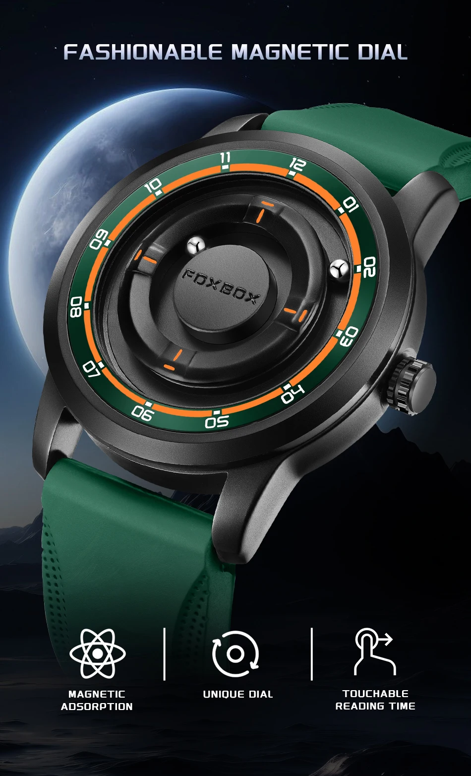 Reloj de pulsera de cuarzo para hombre FOXBOX Fashion, verde, de silicona, resistente al agua, con puntero deslizante y fuerza magnética, para deportes al aire libre.