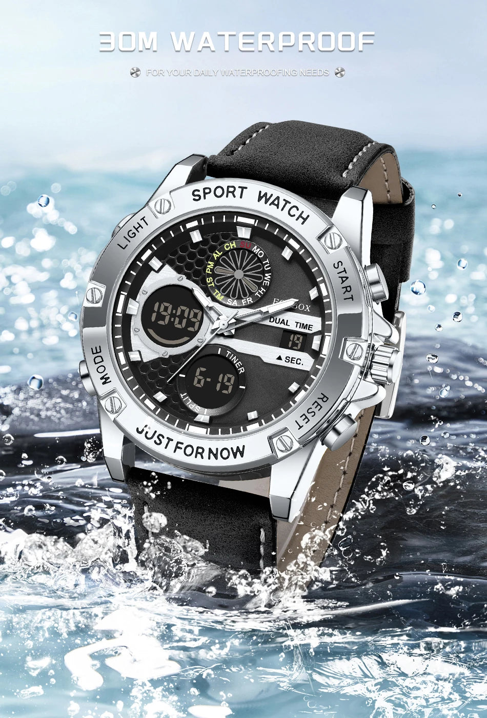 FOXBOX Relojes de lujo de moda para hombre, reloj de pulsera luminoso resistente al agua con fecha y doble horario para hombre, relojes de cuarzo para hombre, relojes masculinos