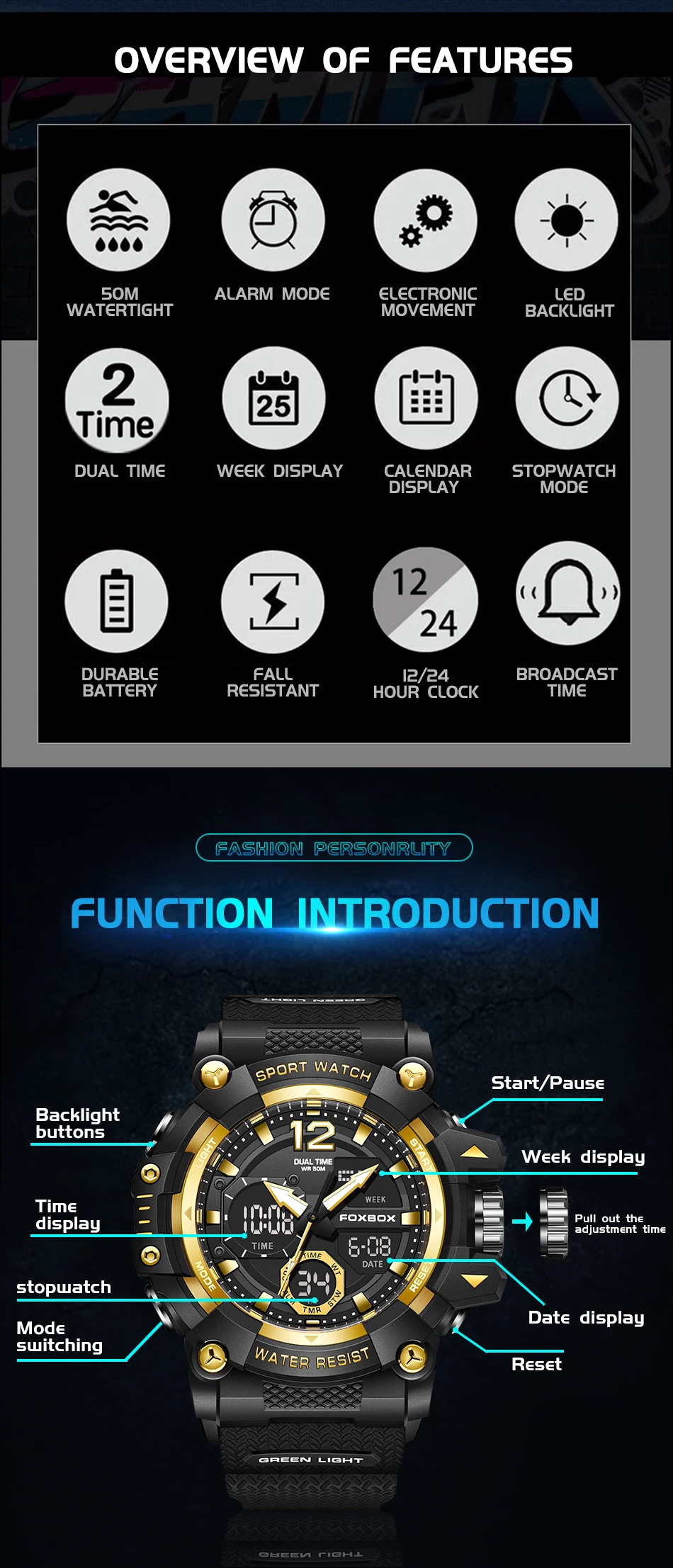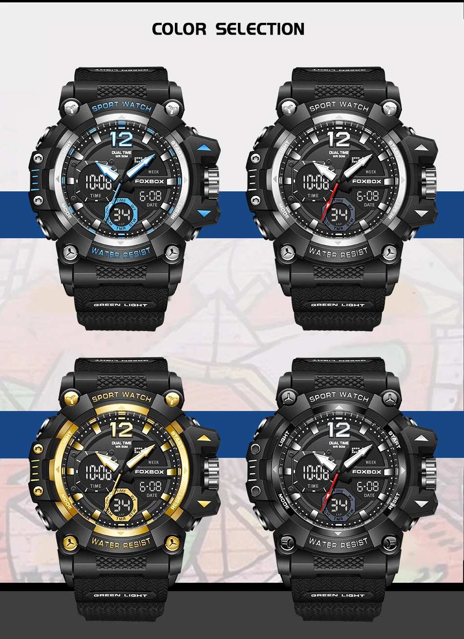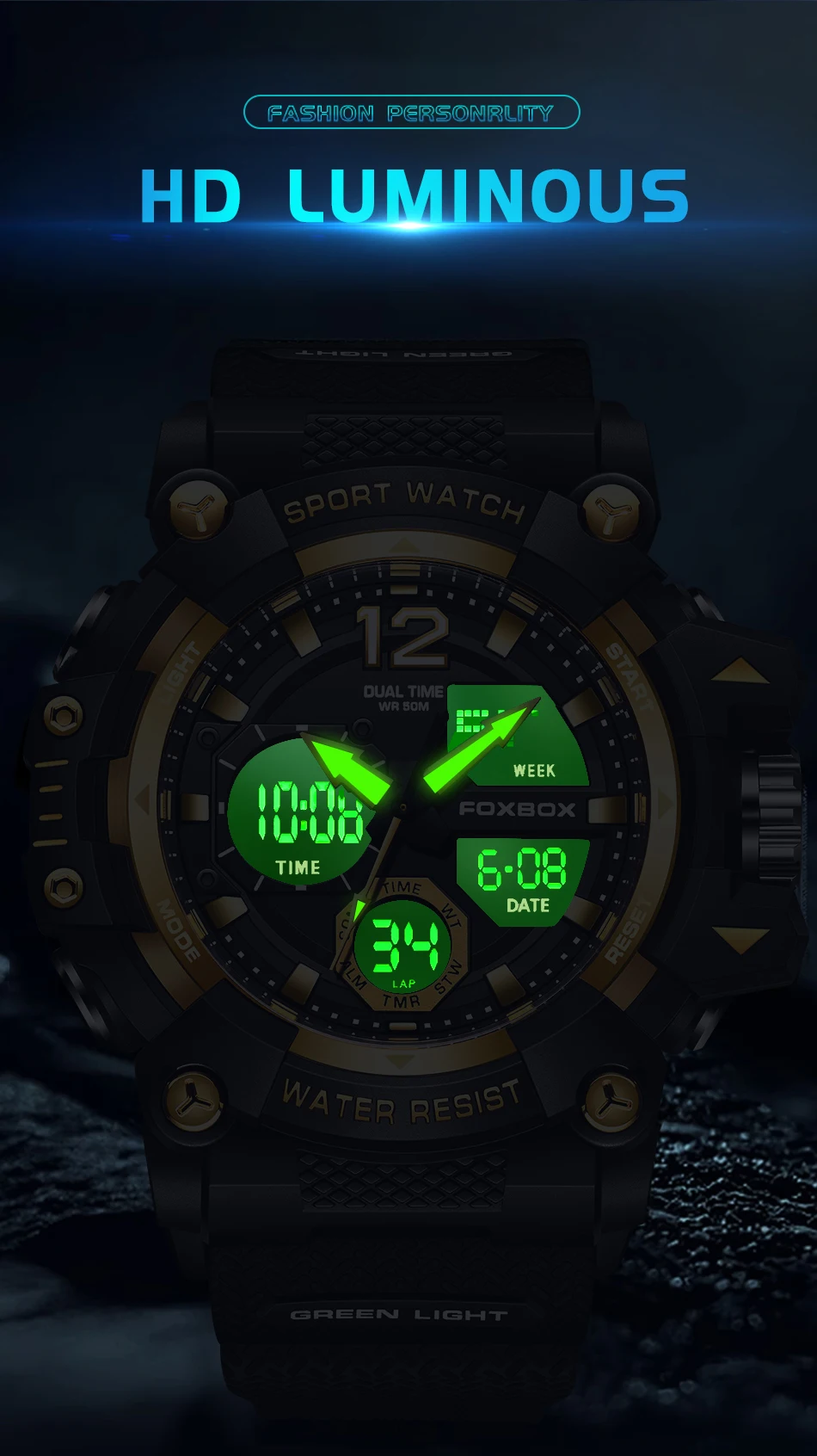 Relojes de pulsera para hombre con pantalla LED de lujo FOXBOX, deportivos, luminosos, impermeables, militares, de cuarzo, para hombre, Relogios Masculino + Caja