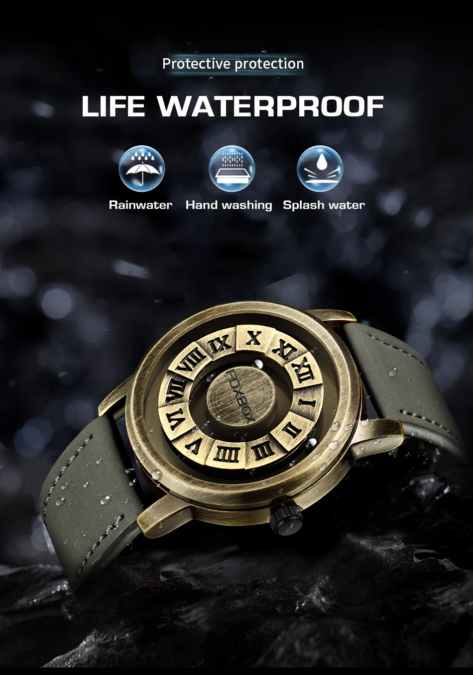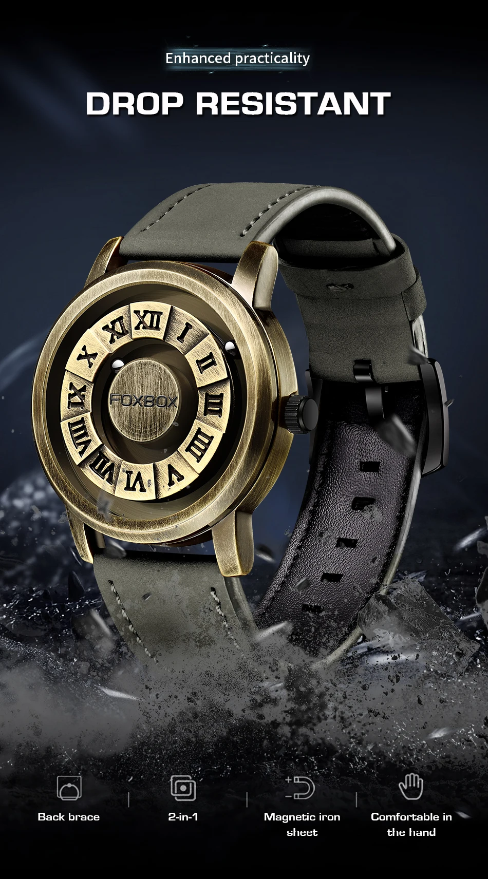 Reloj de cuarzo para hombre FOXBOX, moda, personalidad, creativo, con bola de hierro giratoria, puntero magnético, resistente al agua, para hombre, regalo + caja.