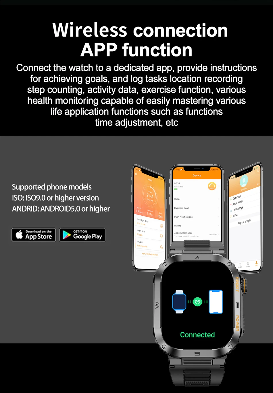 Llamada Bluetooth, mercado de marcado, conexión de código de escaneo, múltiples menús de IU, llamada de voz, actualización OTA, conteo de pasos, calorías, modo de ejercicio, levantar la mano y encender la pantalla, monitoreo del sueño, recordatorio de llamada, recordatorio de mensaje, recordatorio de sedentarismo, recordatorio de despertador, cronómetro, cambio de dial, dial dinámico 3D, reproducción de música, entrenamiento de respiración, medición por hora, frecuencia cardíaca, presión arterial, oxígeno en sangre, calculadora, dial personalizado, ajuste de brillo, clima, despertador independiente Nuevas funciones como seguimiento de movimiento y juegos