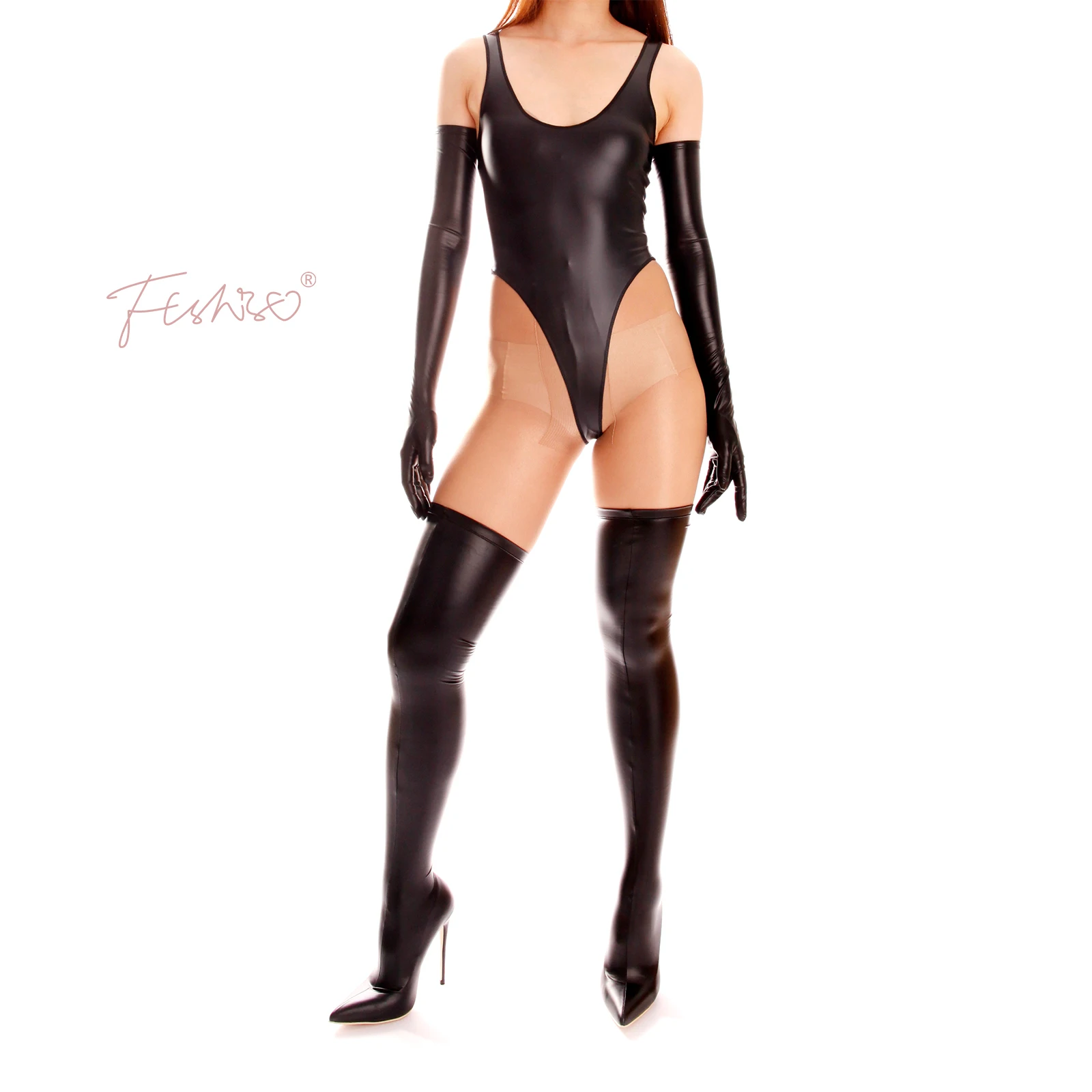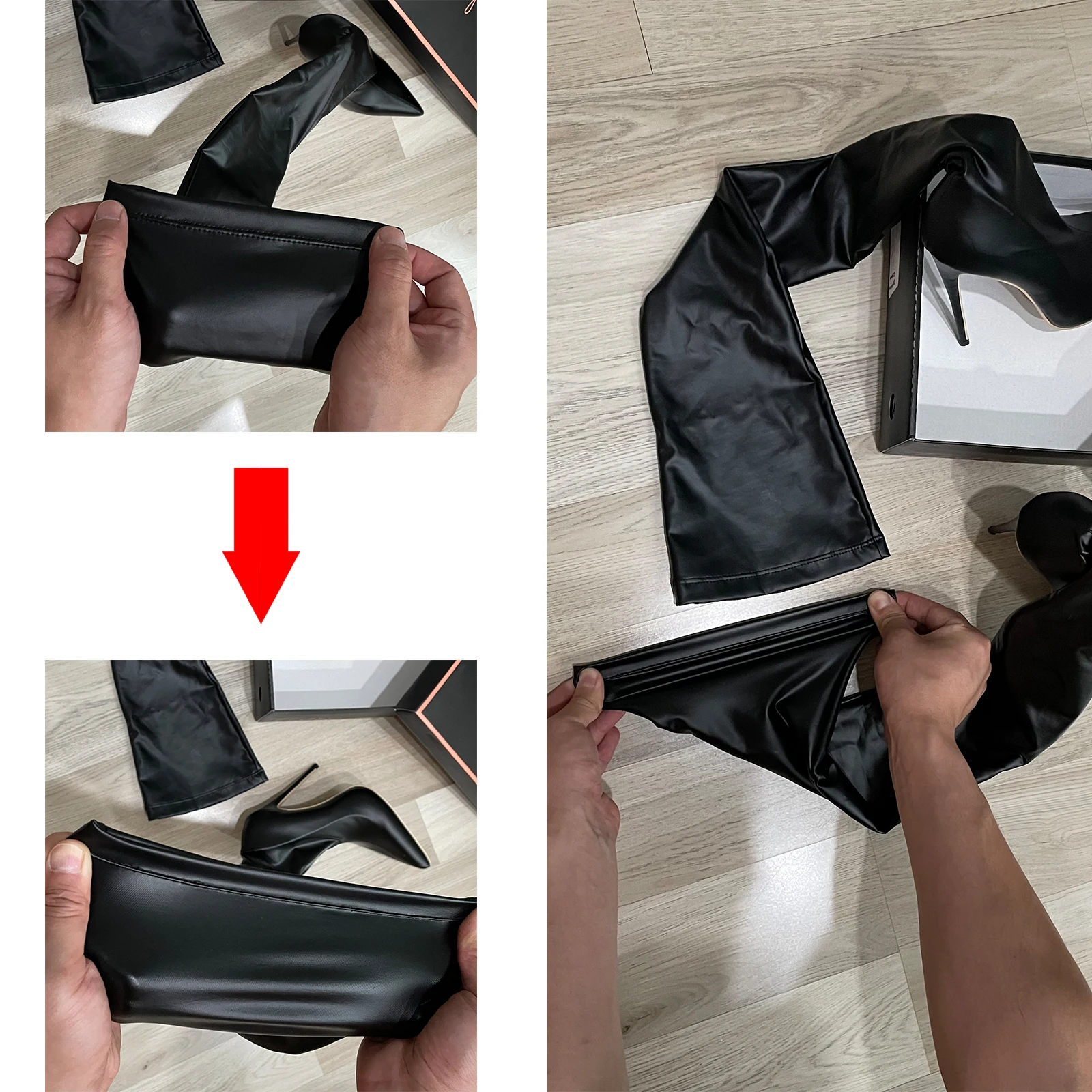 Botas de tacón superalto con efecto mojado de Ftshist para mujer, con tacón de aguja por encima de la rodilla, de piel sintética, con efecto calcetín elástico, zapatos ajustados para cosplay