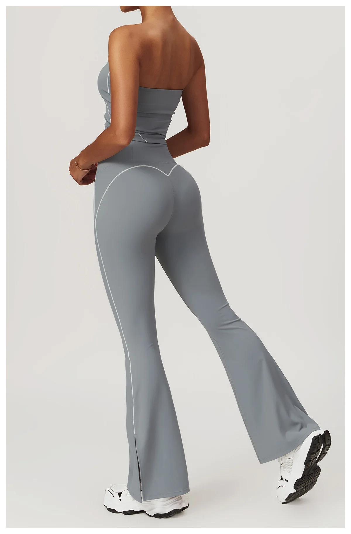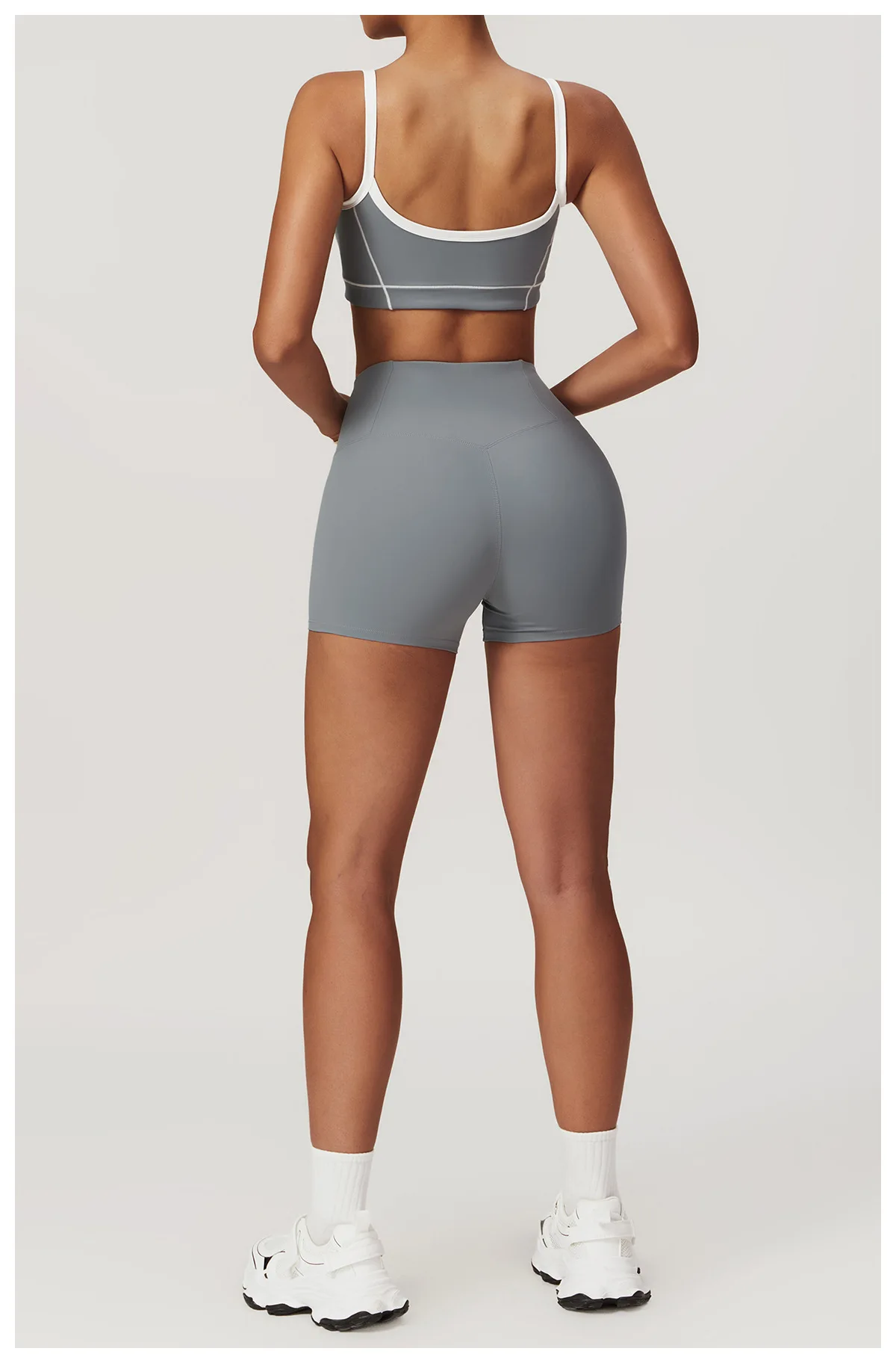Conjunto deportivo de yoga FUBEIKE para mujer, de verano, color nude, ajustado, con espalda descubierta, ideal para gimnasio, ropa deportiva para mujer, para correr al aire libre.