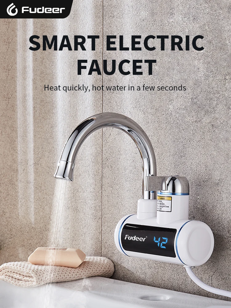 Calentador de agua eléctrico Fudeer de 3000 W y 220 V para grifo de cocina, sin tanque, calentamiento instantáneo, mezclador con agua caliente y pantalla digital.
