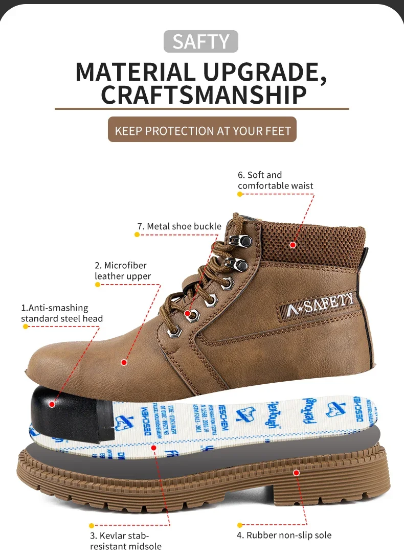 Botas de seguridad de trabajo para hombre, con puntera de acero de tamaño completo, a la moda, antirotura, zapatillas de trabajo, zapatos de seguridad indestructibles para hombre.
