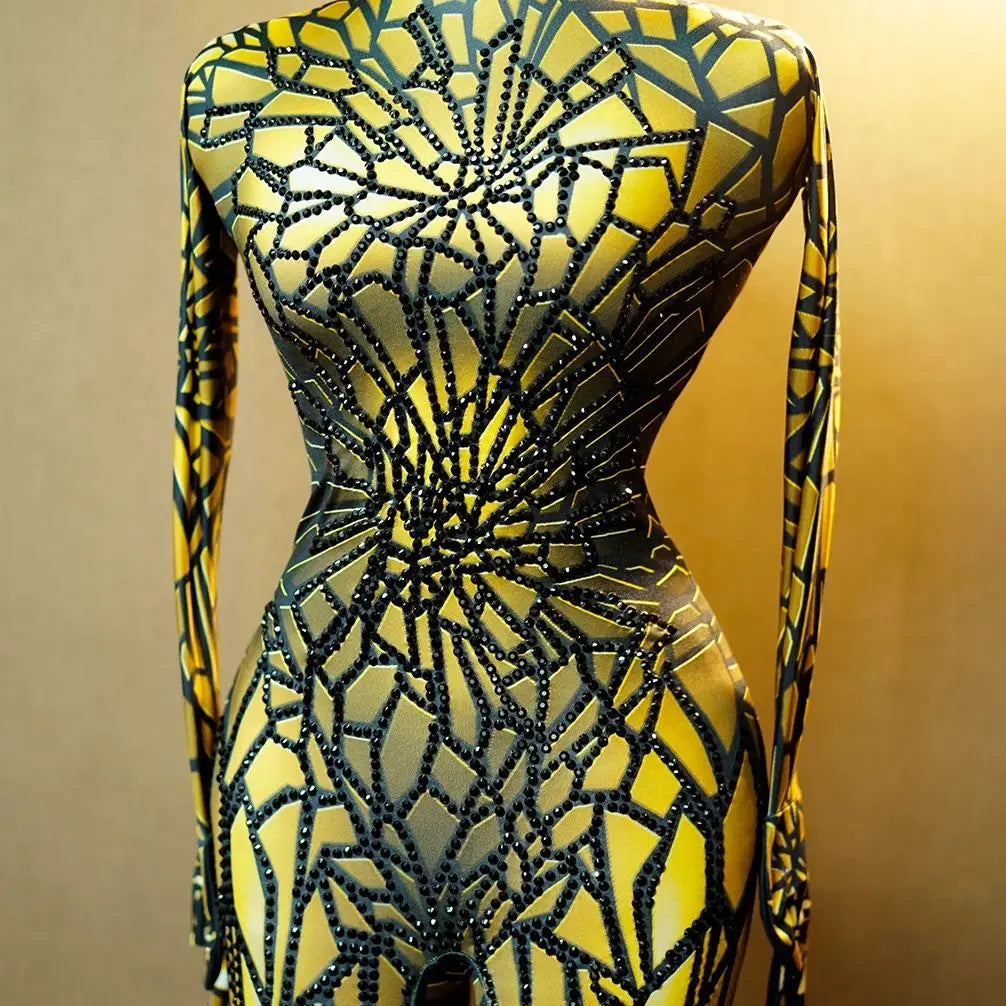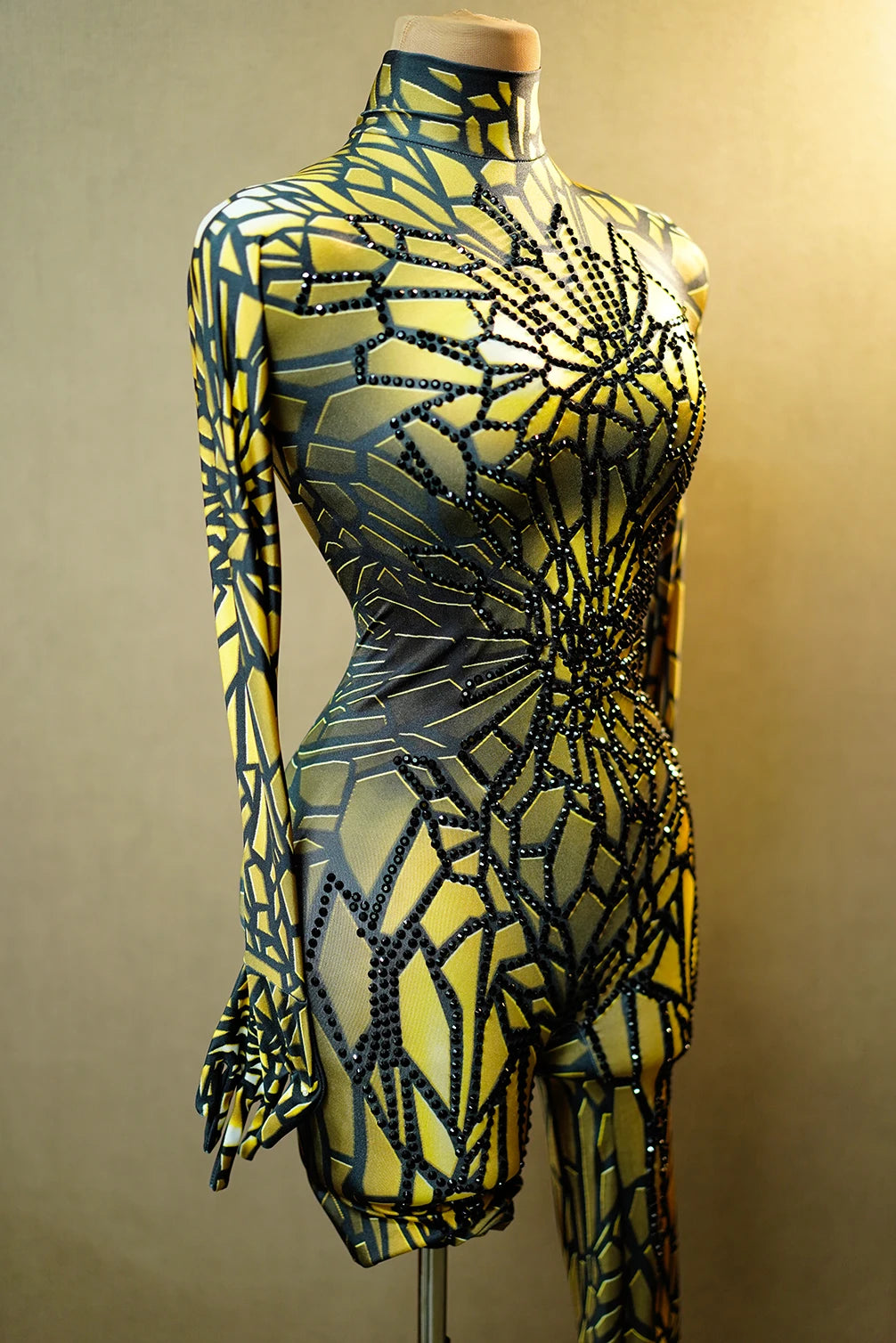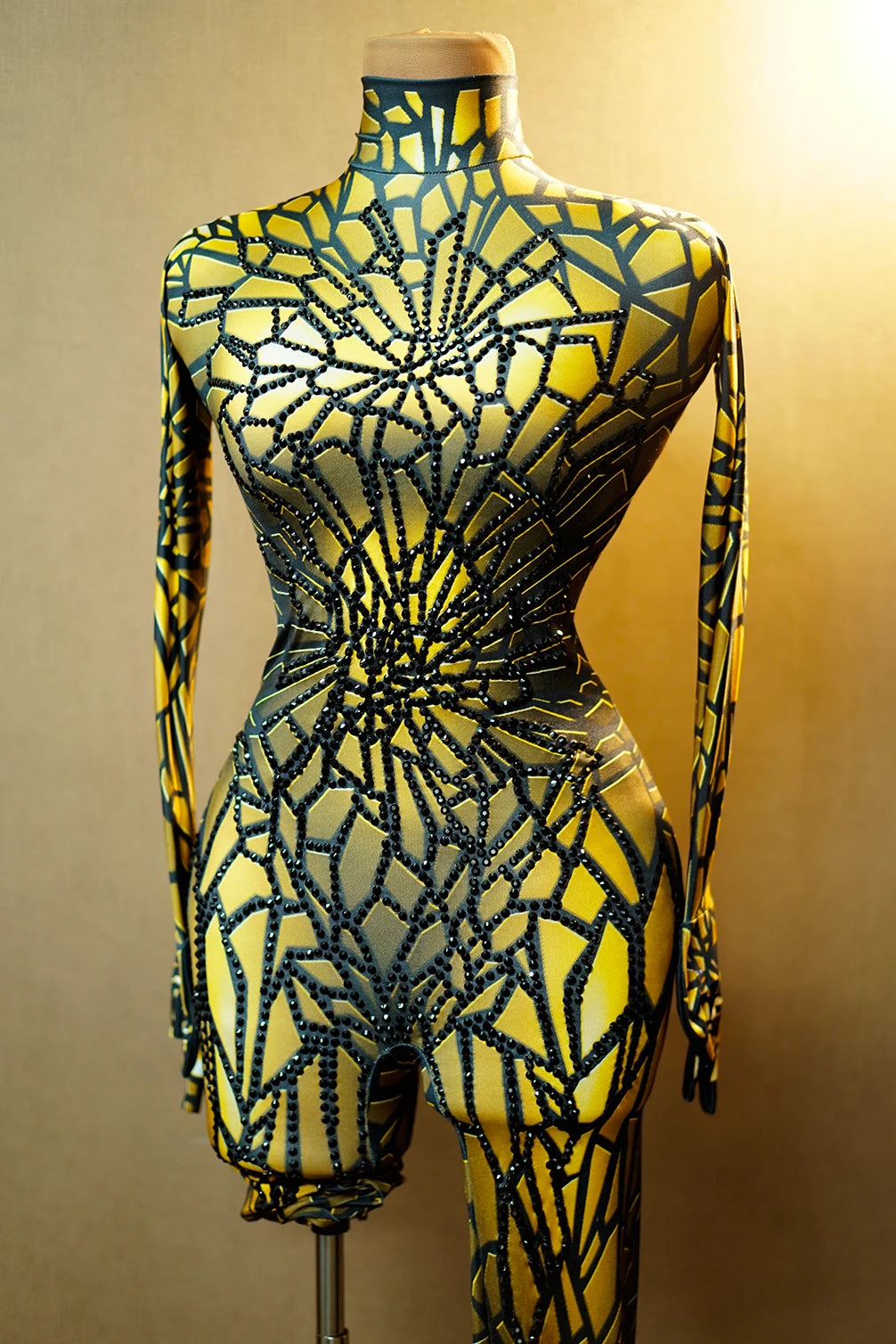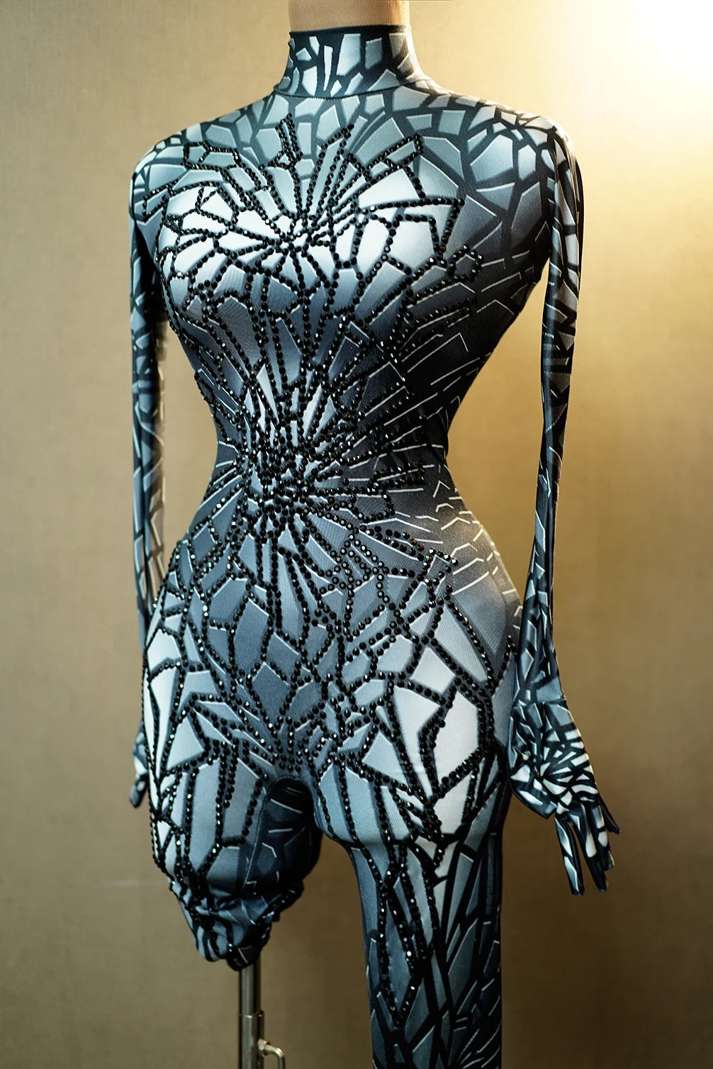 Mono con brillantes y diamantes de imitación para mujer, sexy, elástico, para baile, fiesta, cantante, escenario, cumpleaños, disfraces de Drag Queen Posui 7G