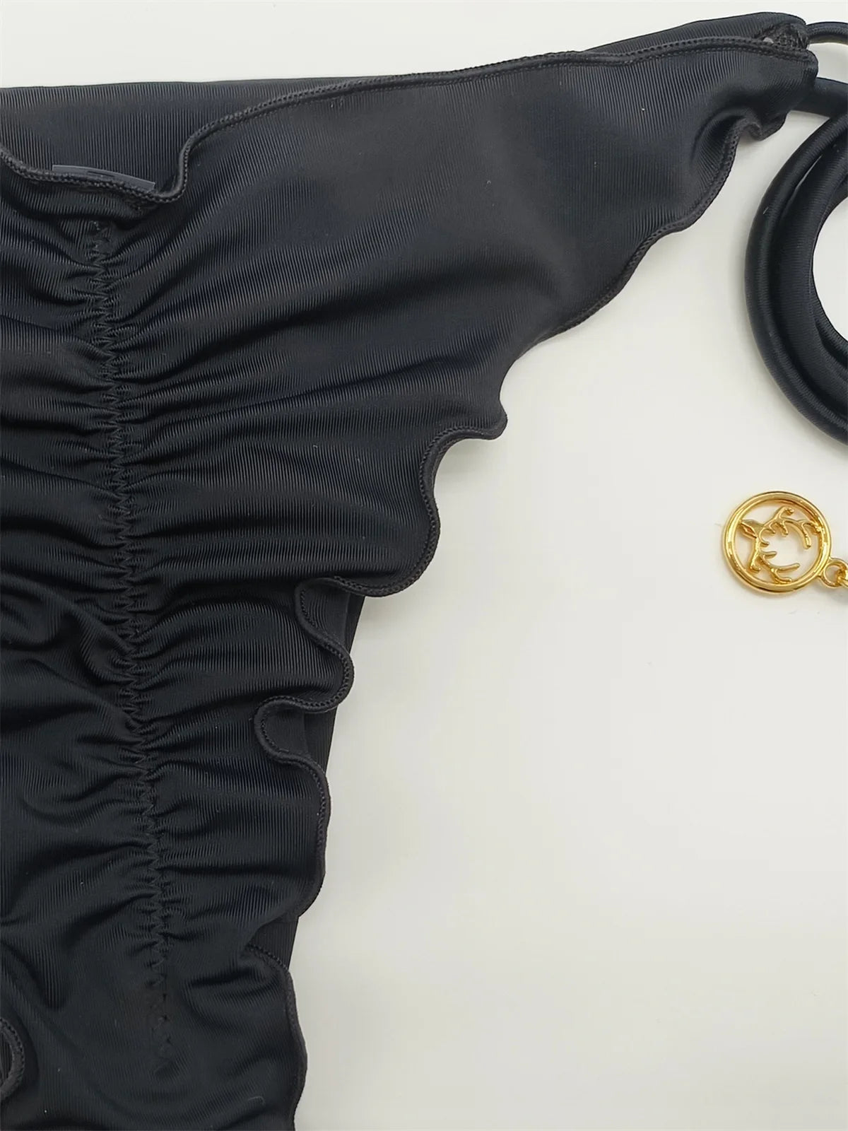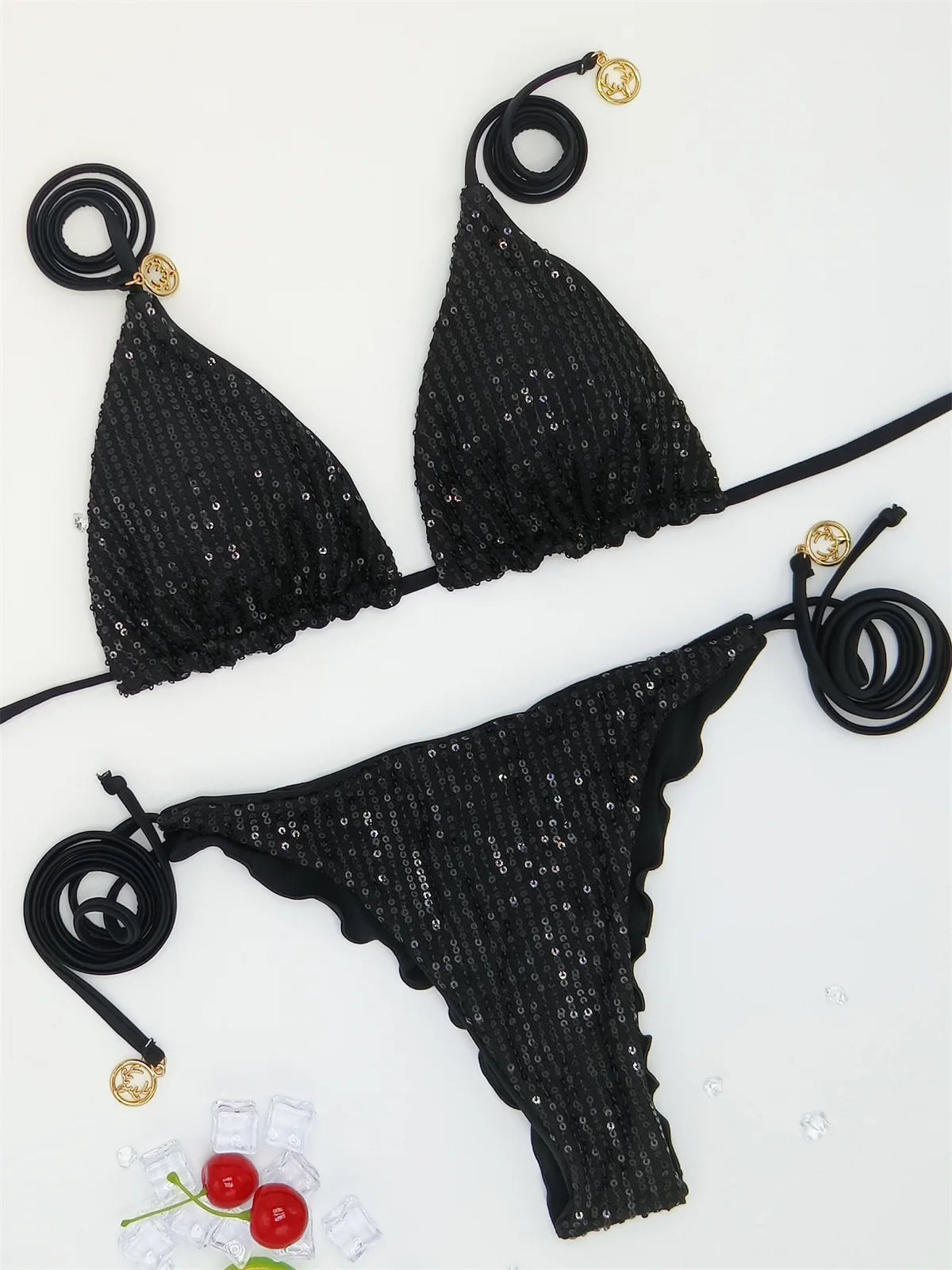 Bikini unicolor con purpurina, bañador sexy con cuello halter, traje de baño para mujer, conjunto de bikini con lentejuelas brillantes, ropa de playa, bikini brasileño