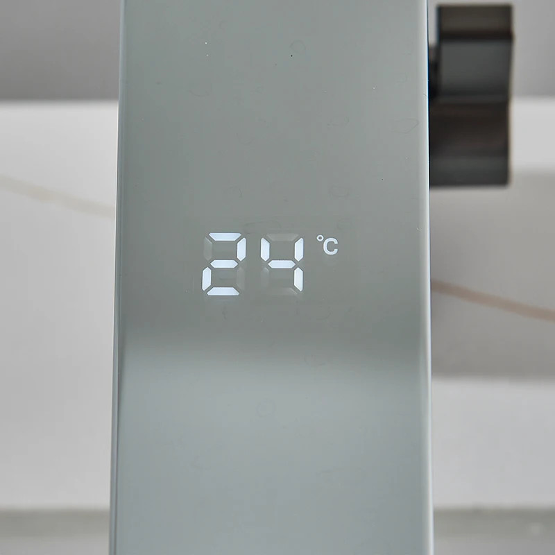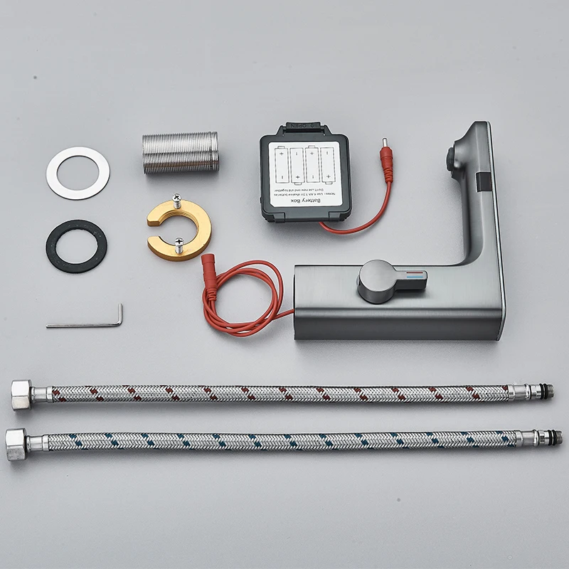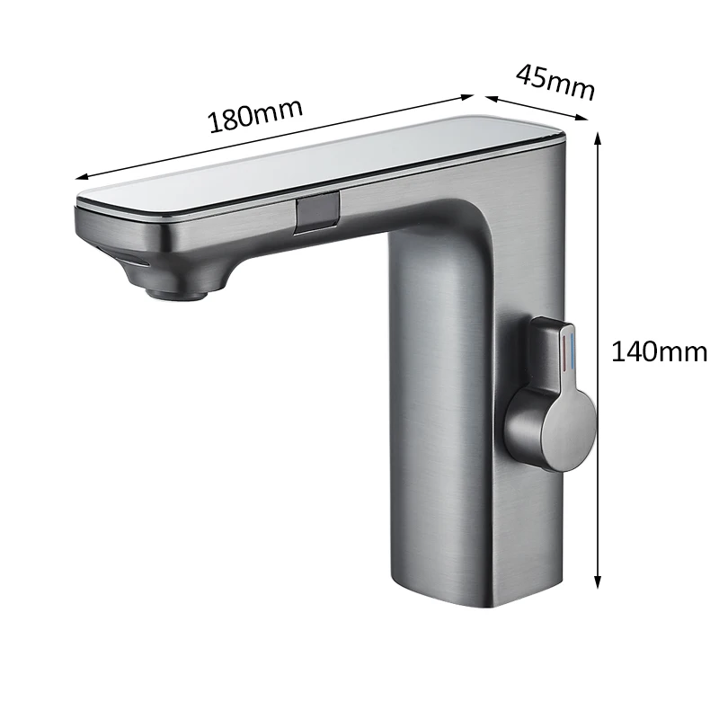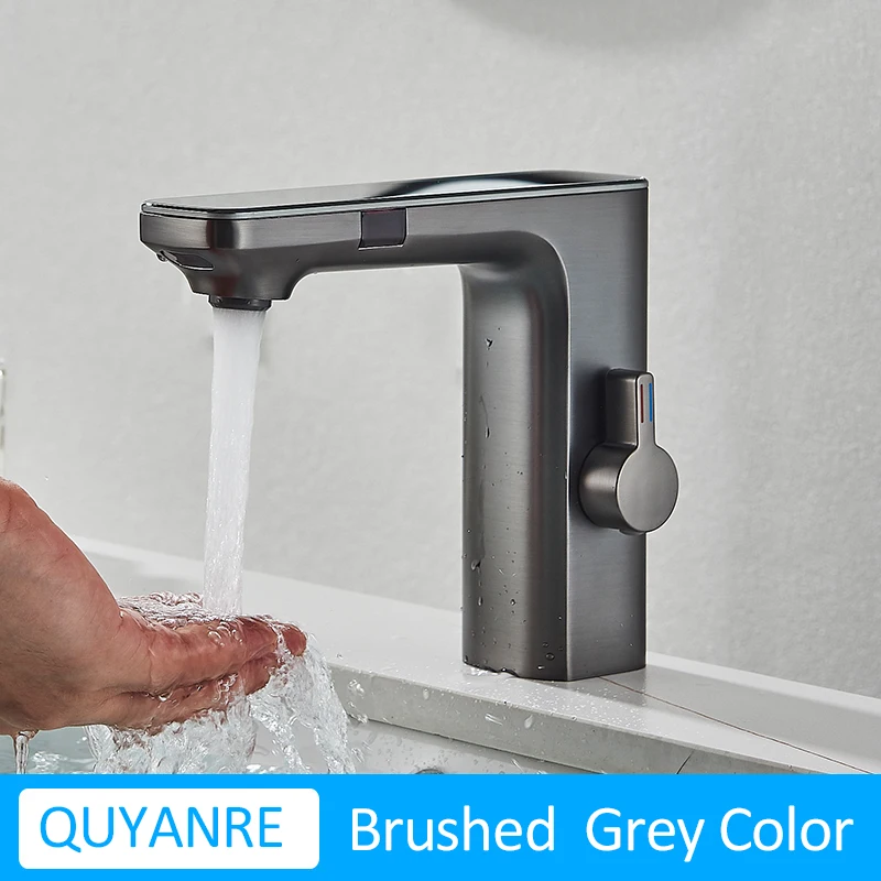 Grifo de lavabo inteligente con sensor, color gris plomo, pantalla digital, mezclador de agua fría y caliente, grifo sin contacto para lavabo de baño