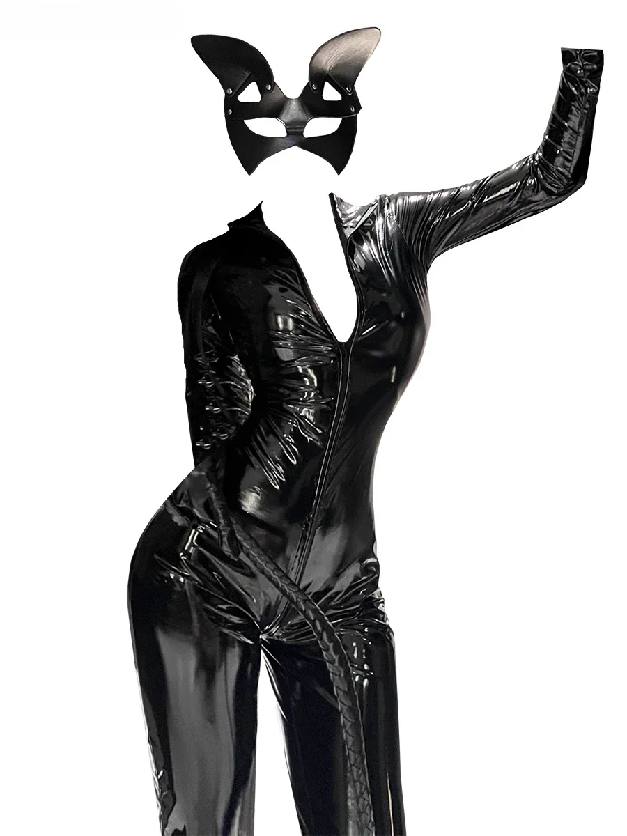 Halloween Catwoman Leather Jumpsuit Nightclub Queen Role Play Bunny Girl Uniform Adult Party Stage Performance Outfit Costume