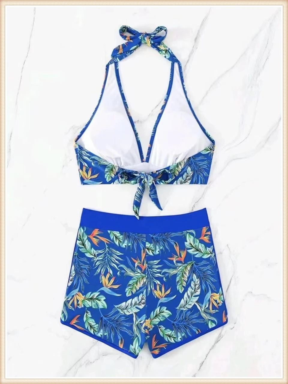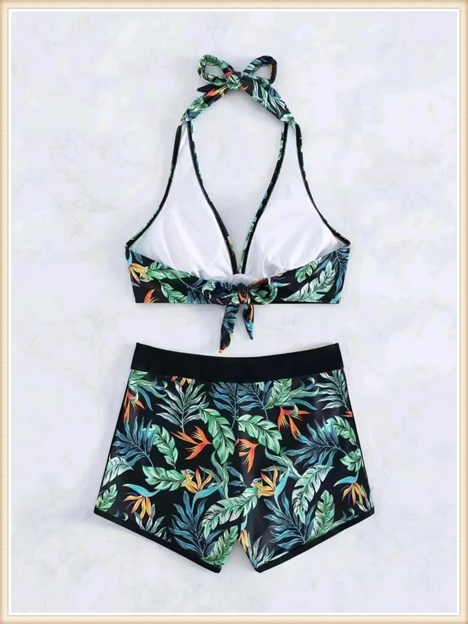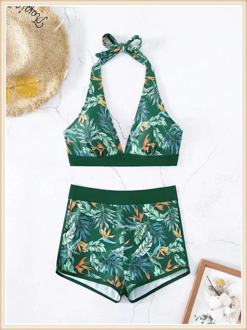Bikini Halter 2023 para mujer, traje de baño de cintura alta, bañador sexy para mujer, traje de baño con estampado de hojas, ropa de playa de verano