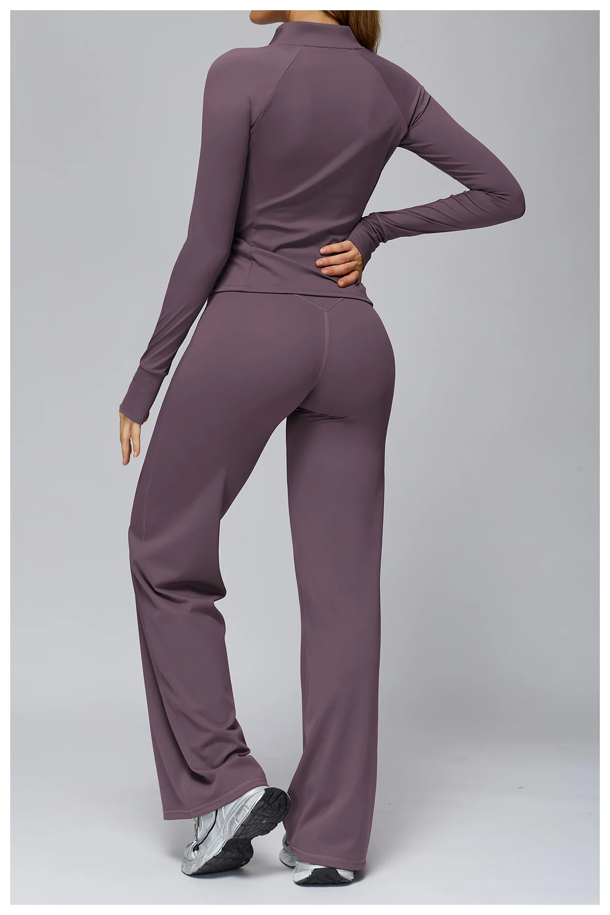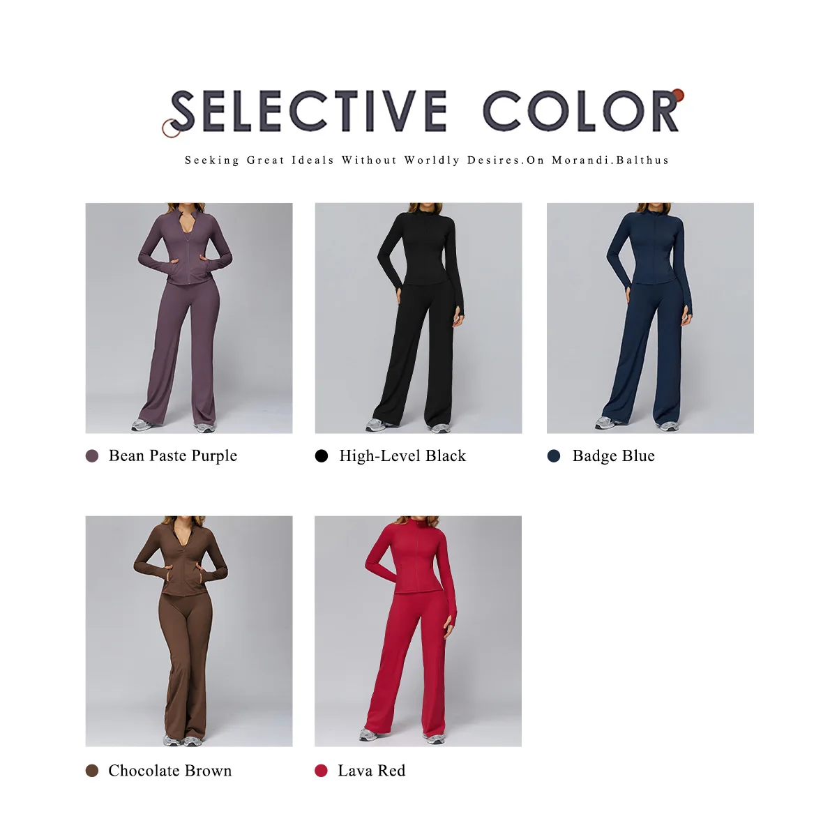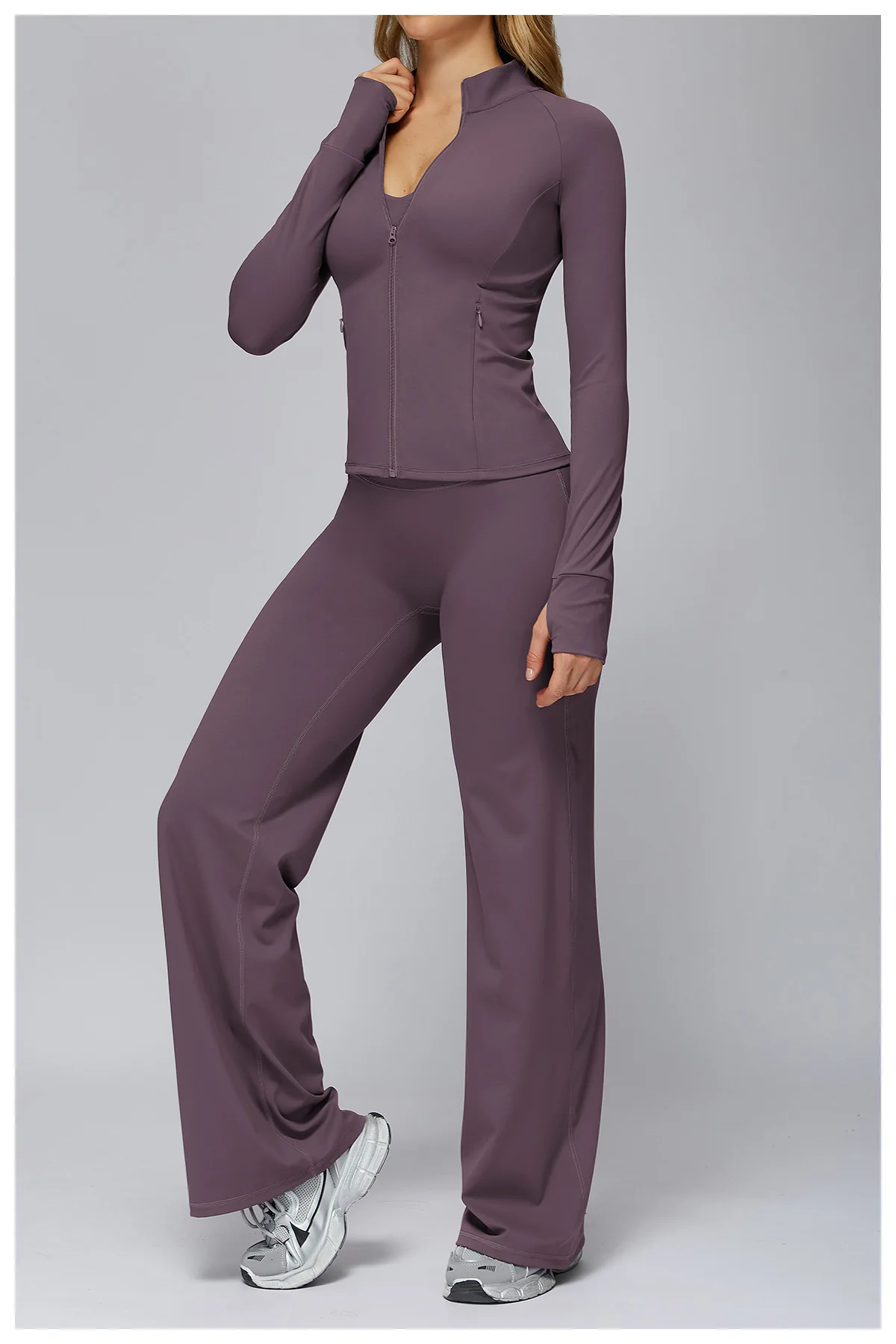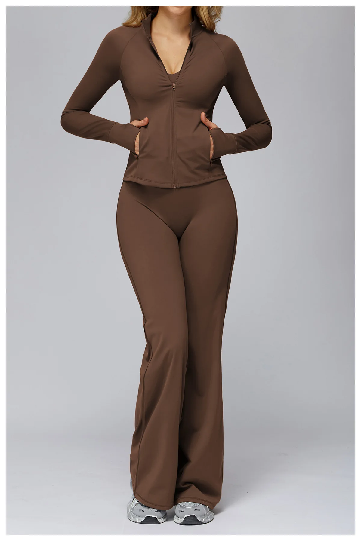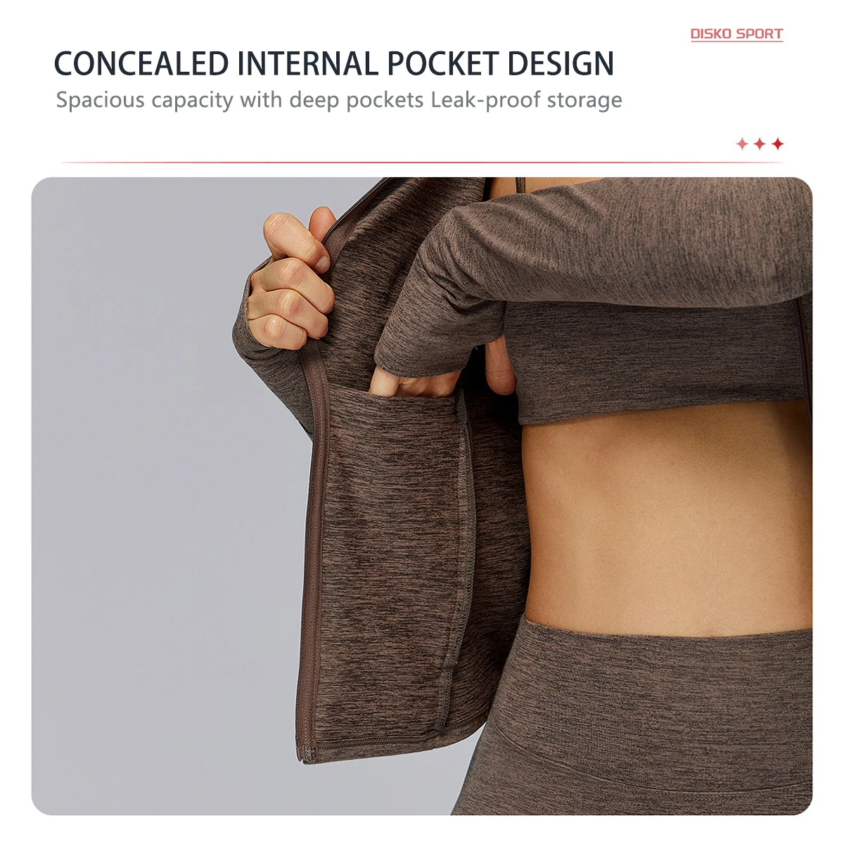 Conjunto deportivo Hearuisavy para mujer, chaqueta deportiva de manga larga con cremallera y bolsillos, ropa exterior ajustada de secado rápido para correr, pantalones de yoga de cintura alta