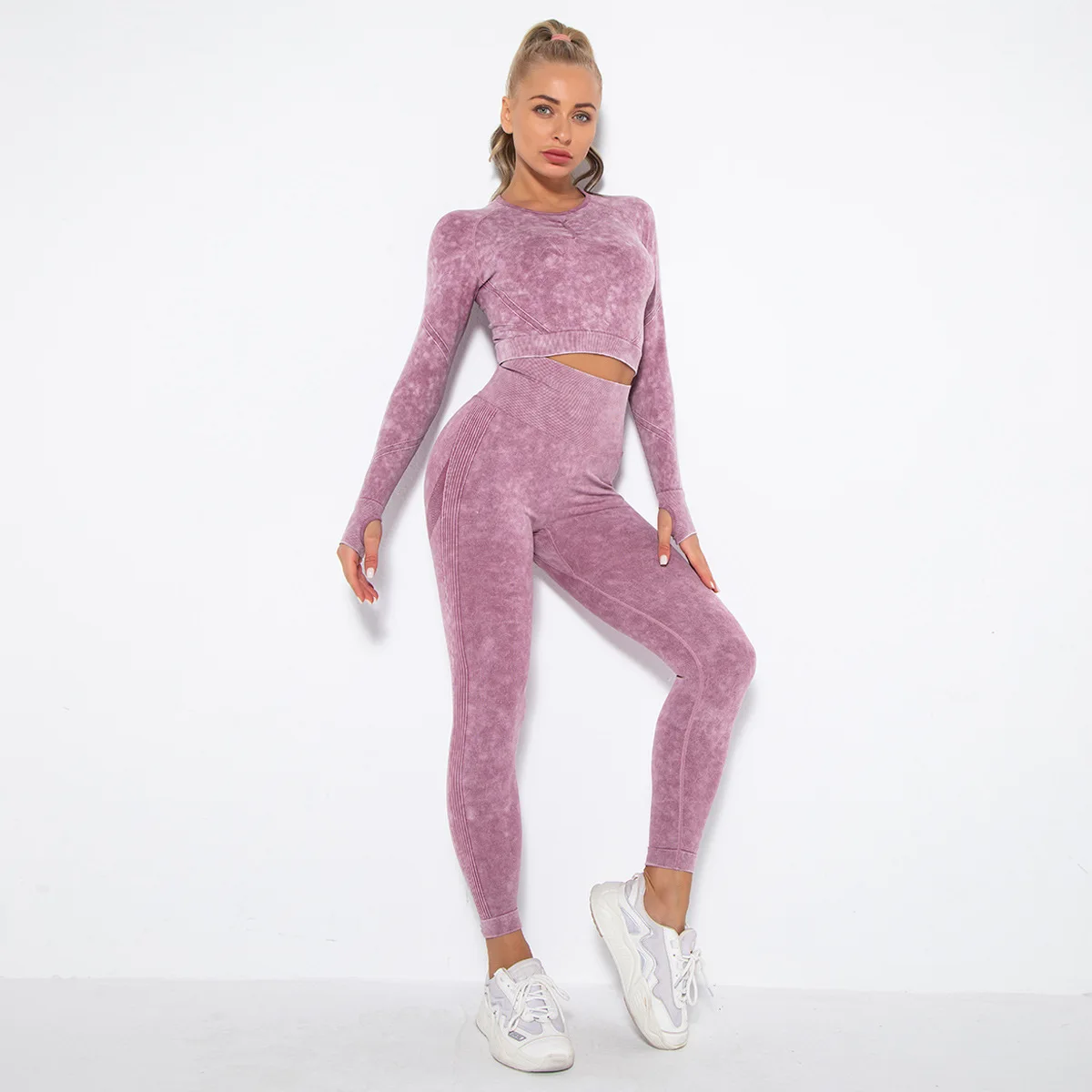Conjunto de Yoga para Mujer de Alta Calidad, Sin Costuras, 2 Piezas, Camiseta Deportiva de Manga Larga con Color Degradado y Leggings Cortos, Ropa Deportiva para Mujer, 2 Piezas