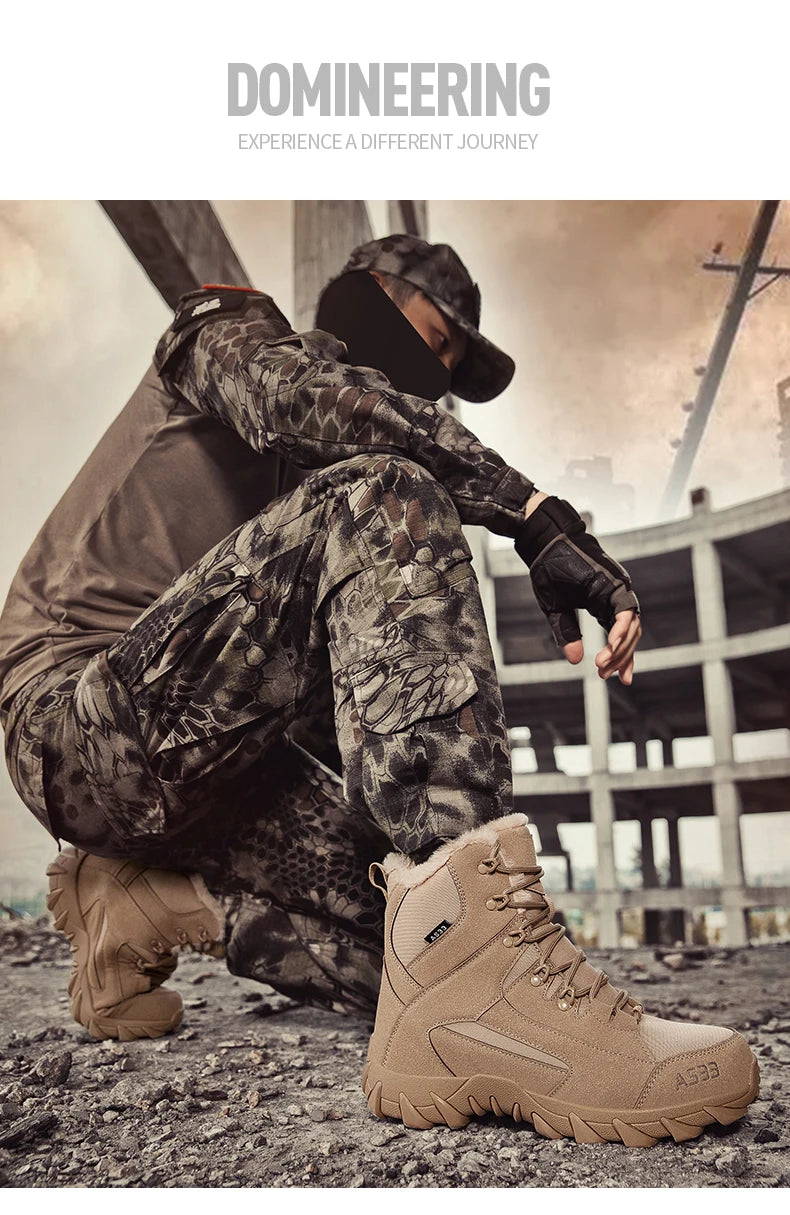 Botas de nieve para hombre de alta calidad, cálidas y de felpa, para invierno, para exteriores, con plataforma antideslizante.