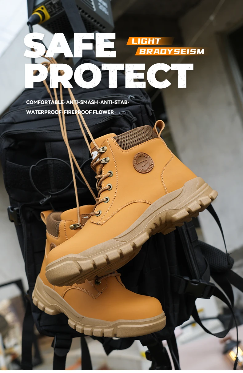 Botas de seguridad de caña alta para hombre, zapatos de seguridad impermeables con punta de acero, zapatos de soldador para construcción, zapatos de trabajo protectores, talla 47 48