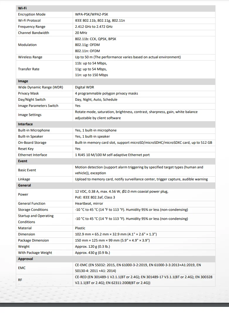 Tipo : Cámara de red Wi-Fi de 4 MP