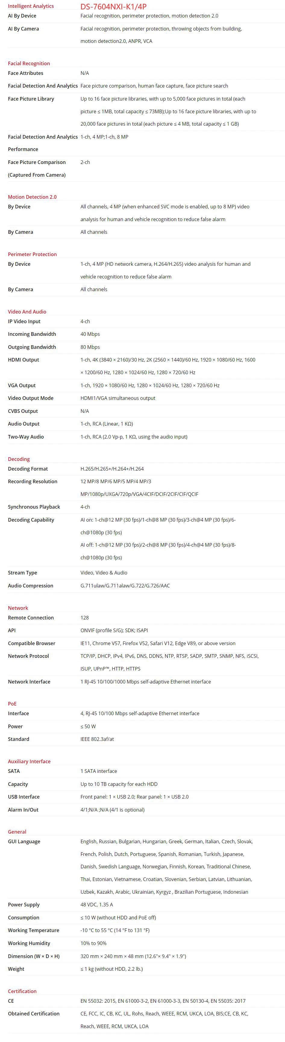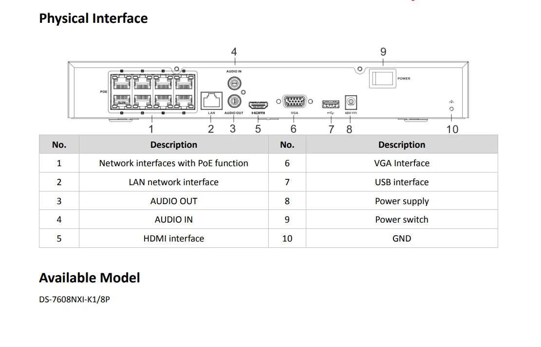 Número de modelo : DS-7604NXI-K1/4P DS-7608NXI-K1/8P