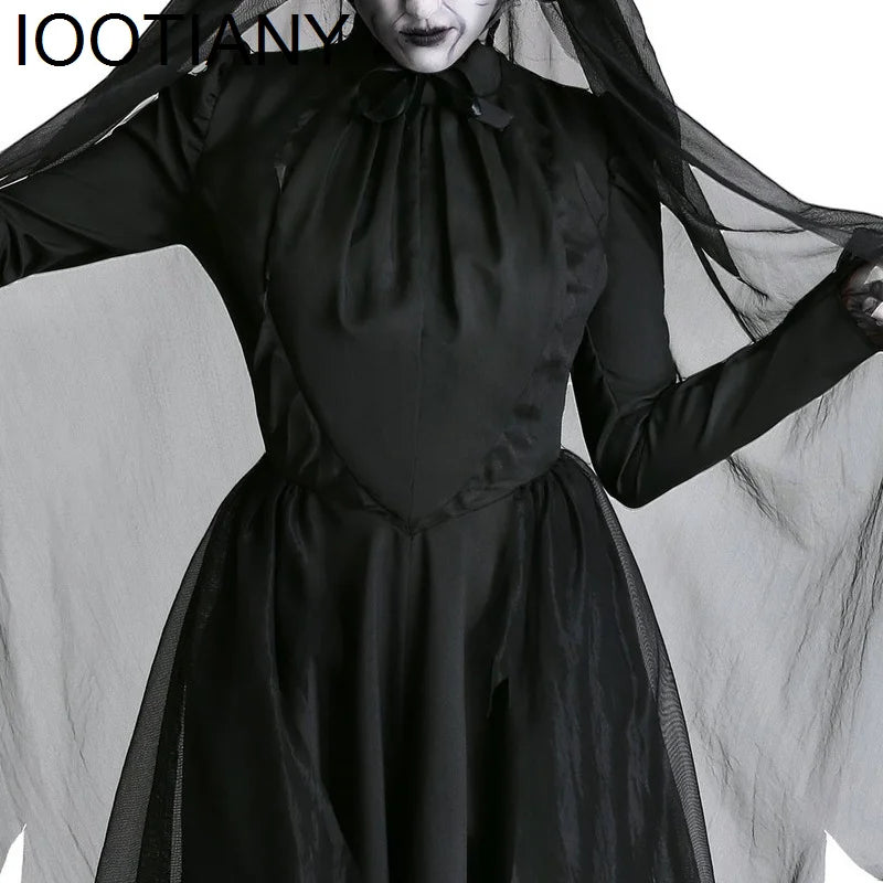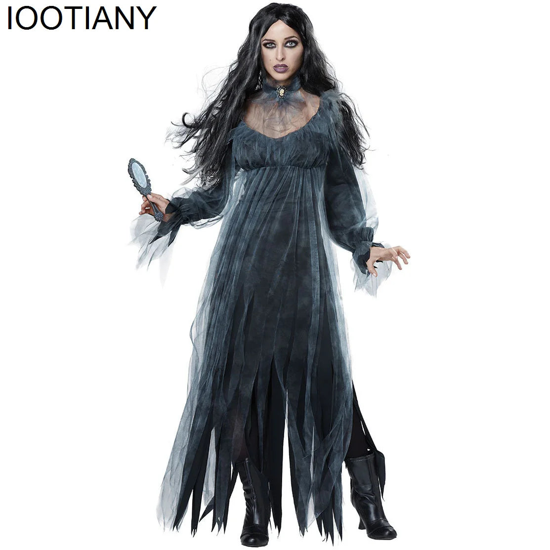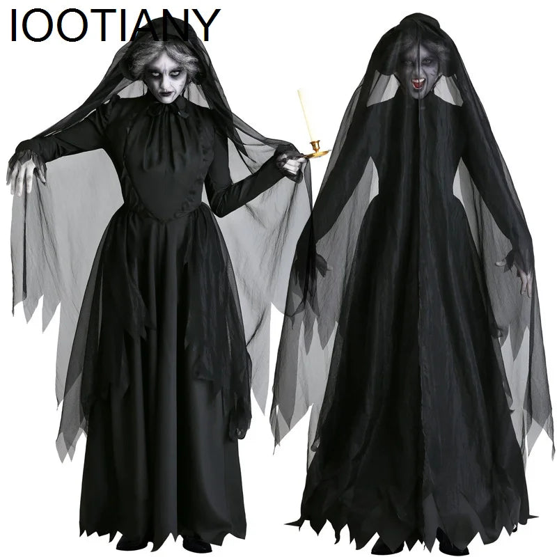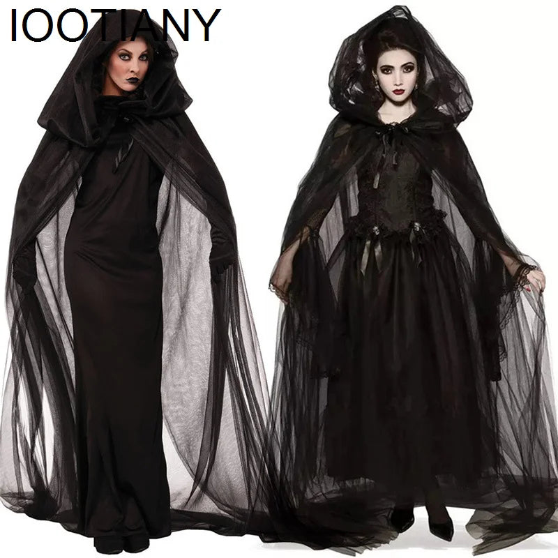 Horror Cosplay Witch Women Scary Zombie Vampire Halloween Carnival Costume Spooky Ghost Medieval Hooded Cape Day of The Dead