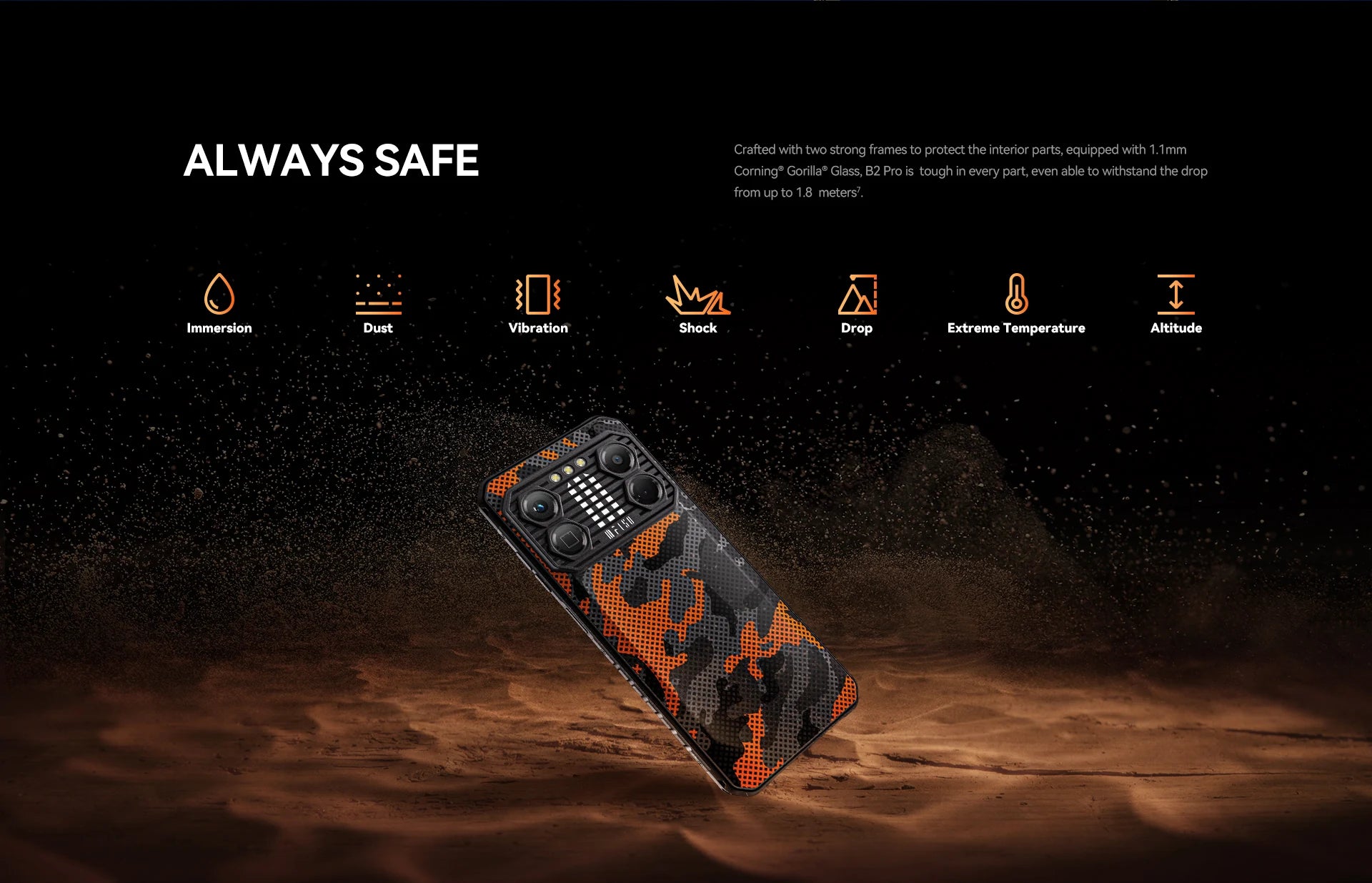 Teléfono robusto IIIF150 B2 Pro con procesador MTK Helio G99, Android, 10 000 mAh, carga de 30 W, 24 GB de RAM, 256 GB de almacenamiento, cámara de 108 MP, pantalla de 6,8" y 120 Hz.