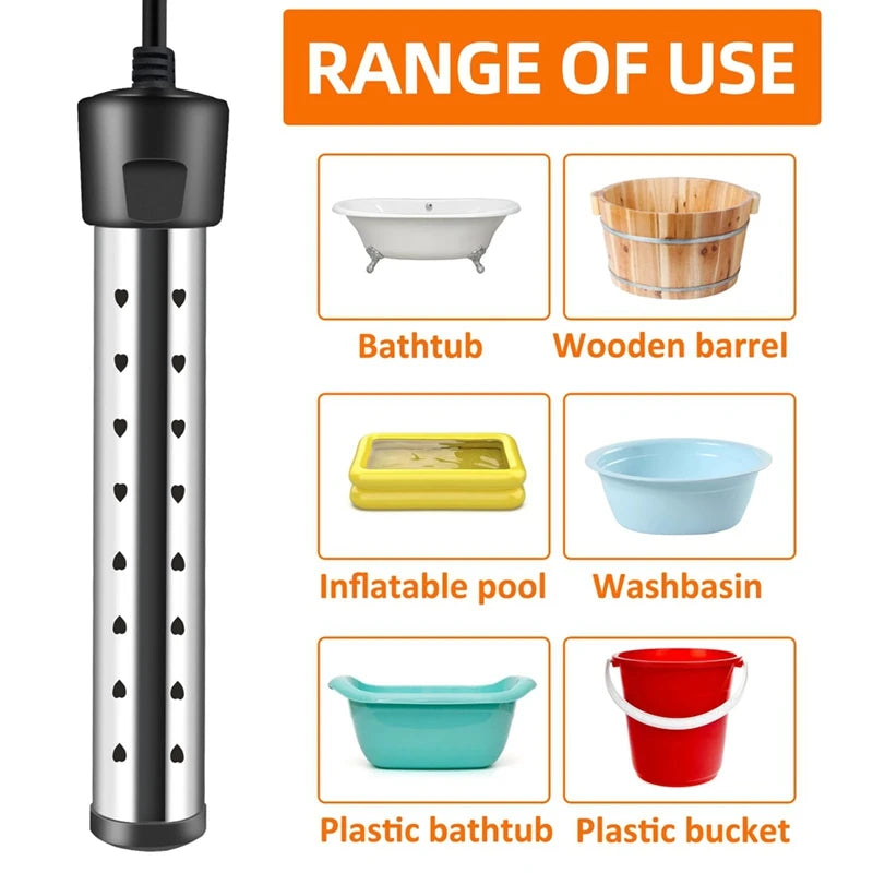 Mayor durabilidad: Gracias a la transición del acero inoxidable 201 al 304, nuestro calentador de inmersión ahora ofrece una resistencia superior a la corrosión. El robusto enchufe UL de tres conexiones a tierra mejora la seguridad y la vida útil, garantizando una solución de calefacción confiable para un uso prolongado.