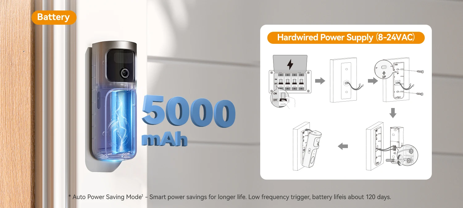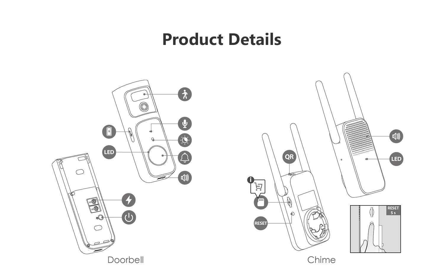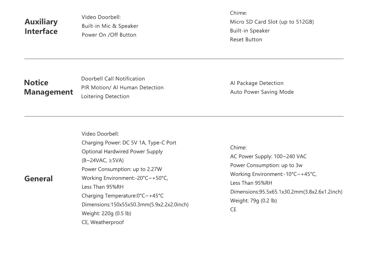 Dimensions (Doorbell): 150x55x50.3 mm (5.9x2.2x2.0 inch)