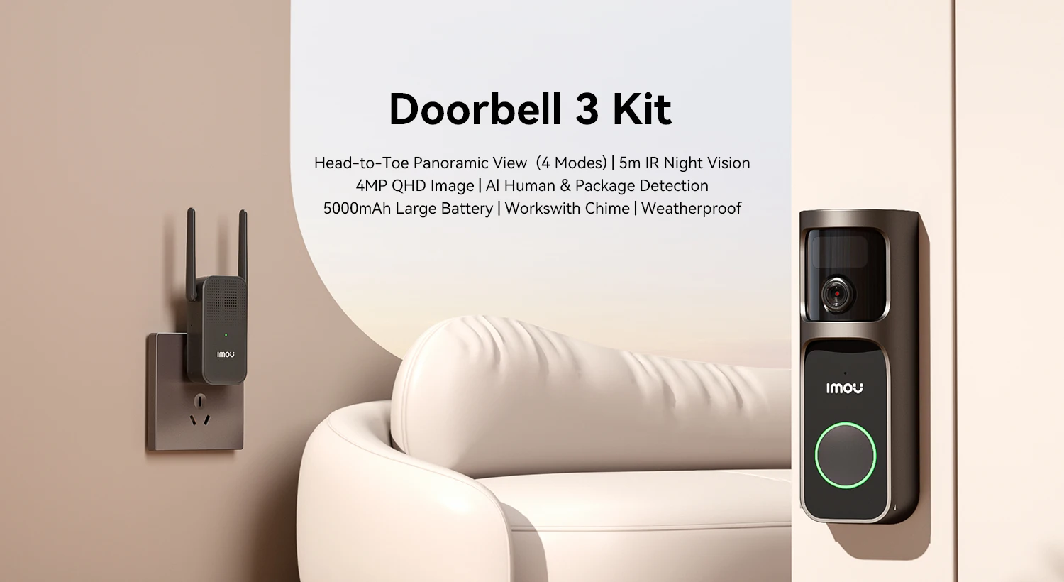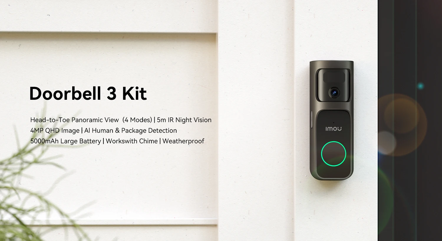 IMOU 4k Video Doorbell 3 with Chime fisheye lens Human Package Detection Rechargeable Battery Two-way Talk Waterproof 360° View