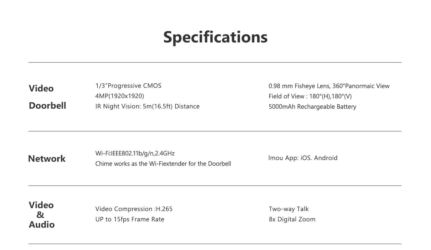 Chime works as the Wi-Fi extender for the Doorbell: Wi-Fi:IEEE802.11b/g/n, 2.4GHz