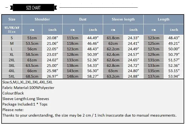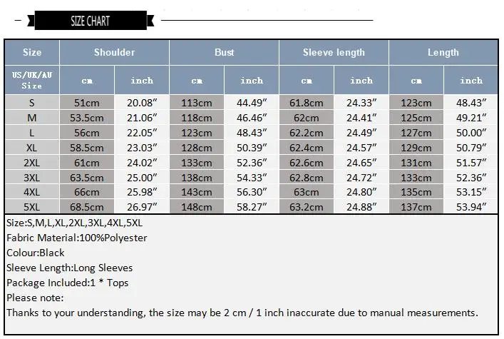 Tallas: S, M, L, XL, 2XL, 3XL, 4XL, 5XL