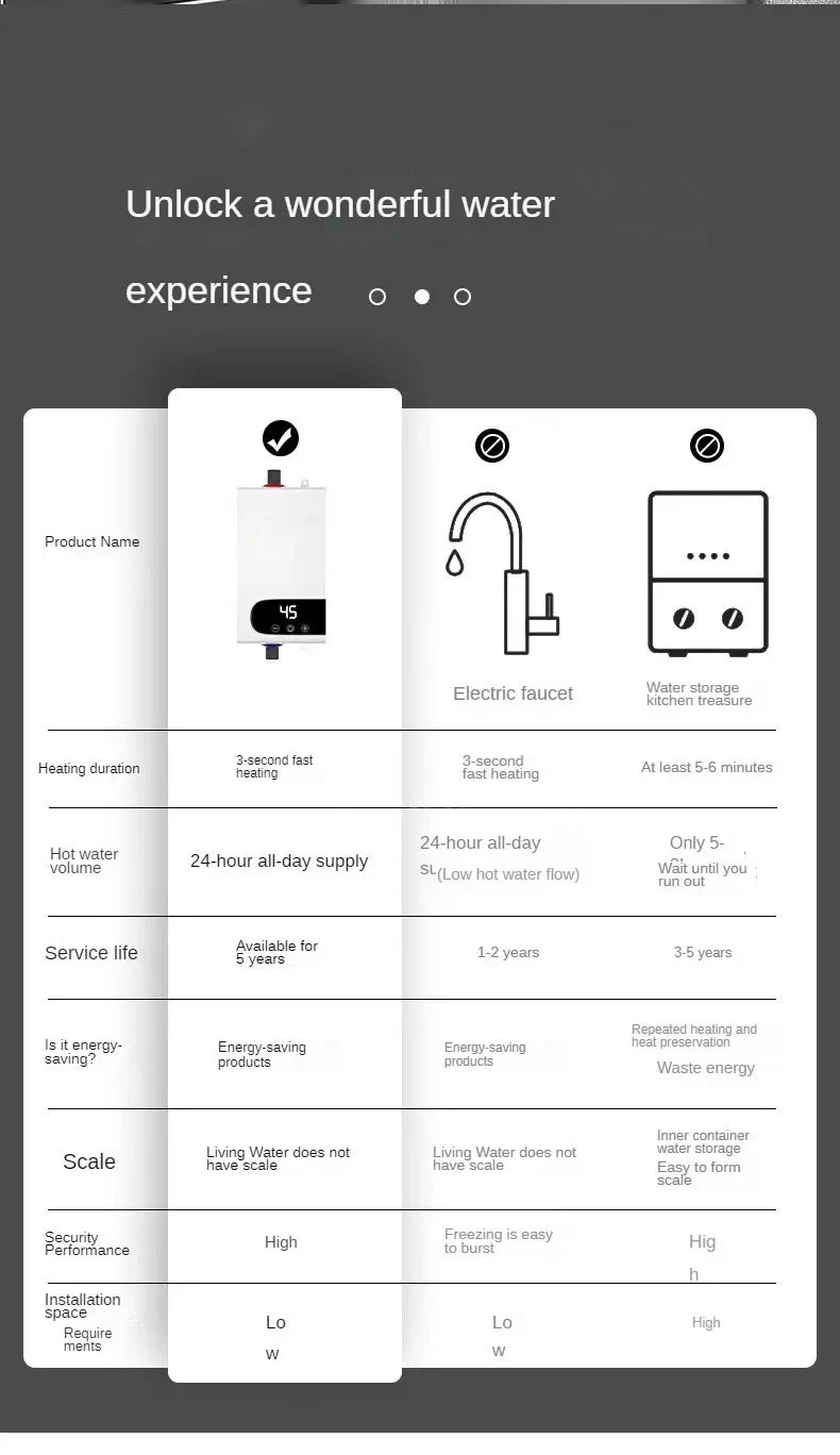 Calentador de agua eléctrico instantáneo con función de memoria, conversión de frecuencia y temperatura constante. 220 V, 4500 W.