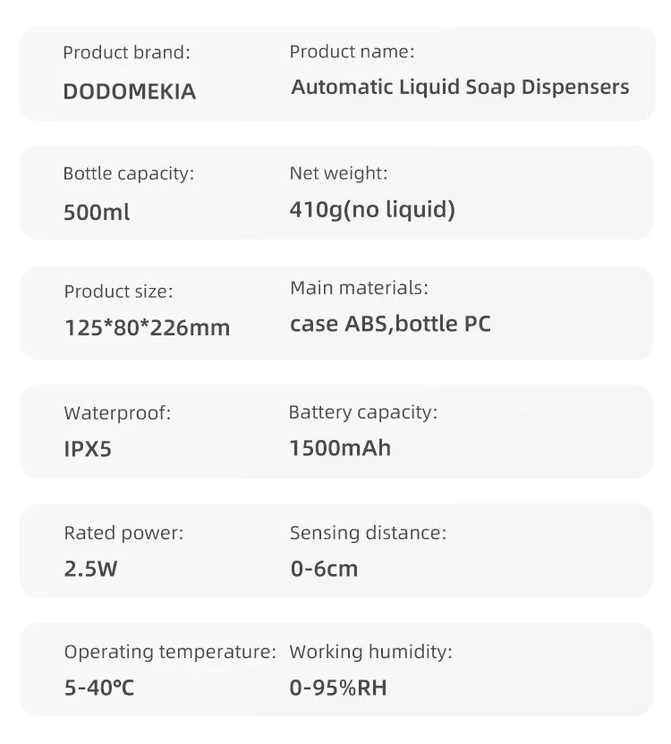 Dispensador de jabón líquido Tipo : Dispensador de jabón automático