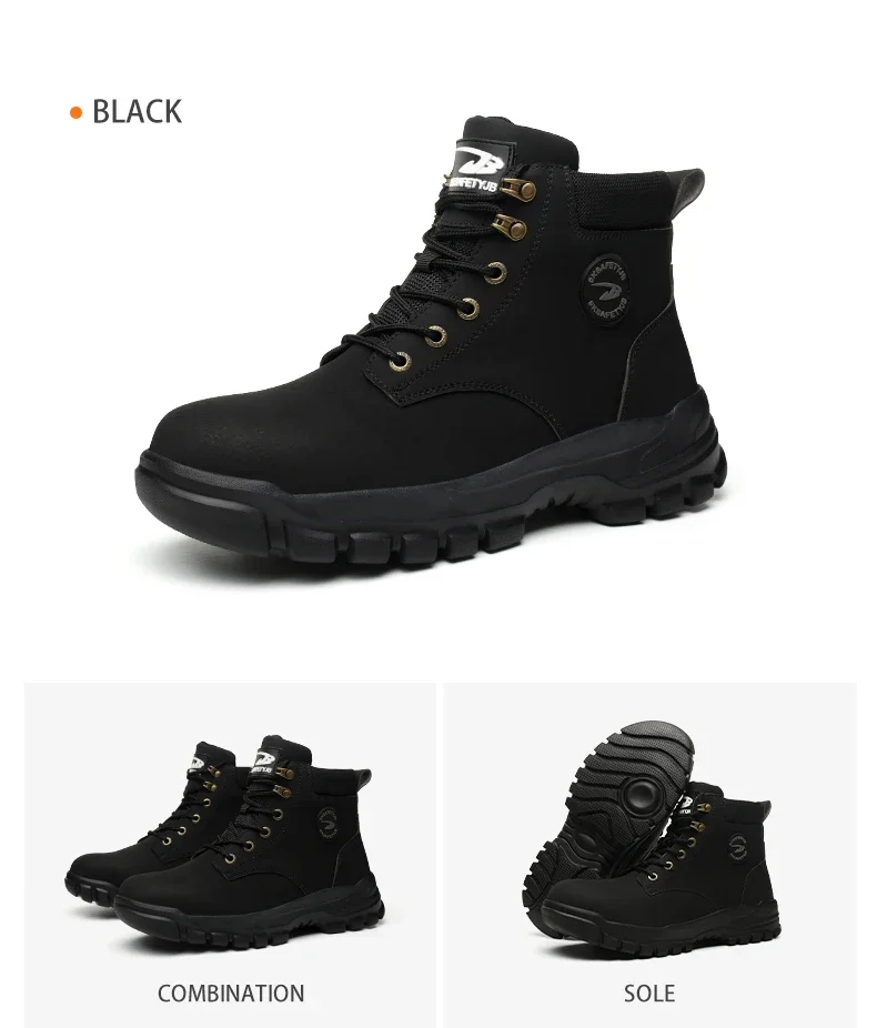 Bota de seguridad para hombre y mujer, resistente a impactos y pinchazos, con suela de goma ligera, forro interior cómodo y protección antisalpicaduras.