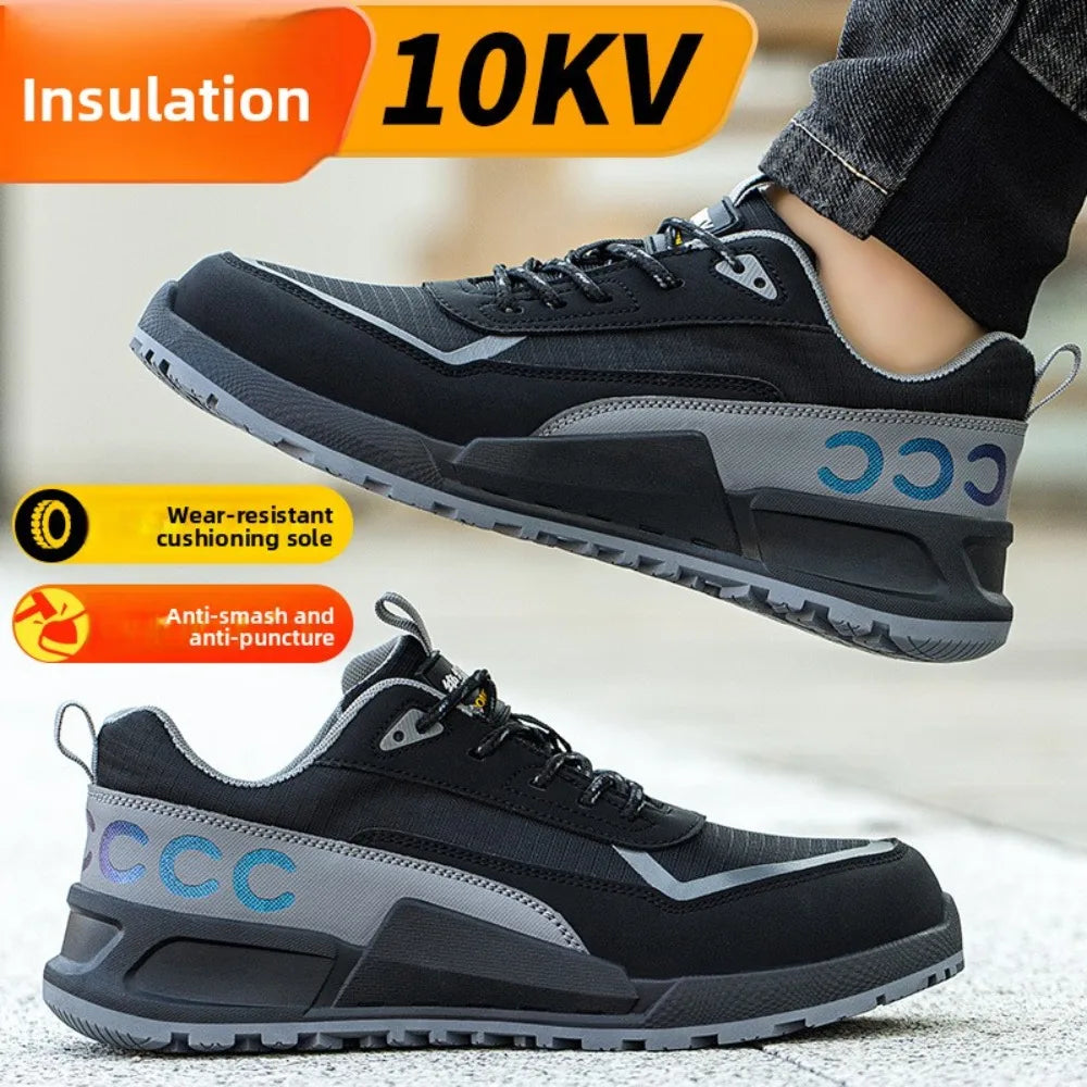 Calzado de protección laboral para hombre, anti-aplastamiento, anti-perforación, aislante 10KV, resistente al desgaste, calzado eléctrico de seguridad.