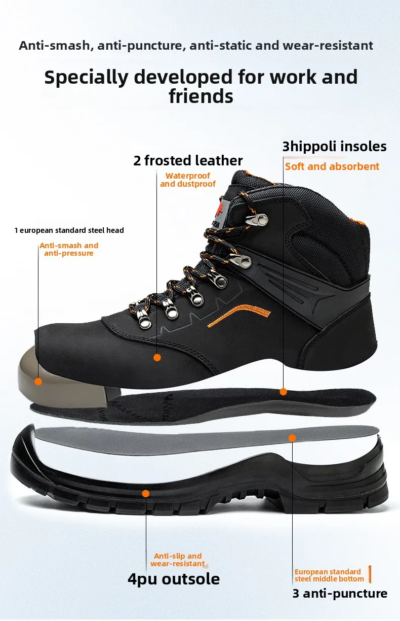 Zapatos de trabajo de cuero antiestáticos, de protección laboral, antiaplastamiento, antipinchazos, antideslizantes, antipolvo y resistentes al desgaste para hombre.