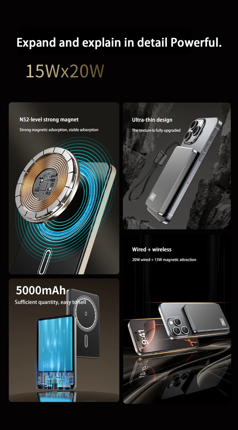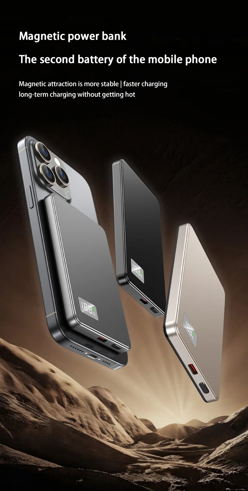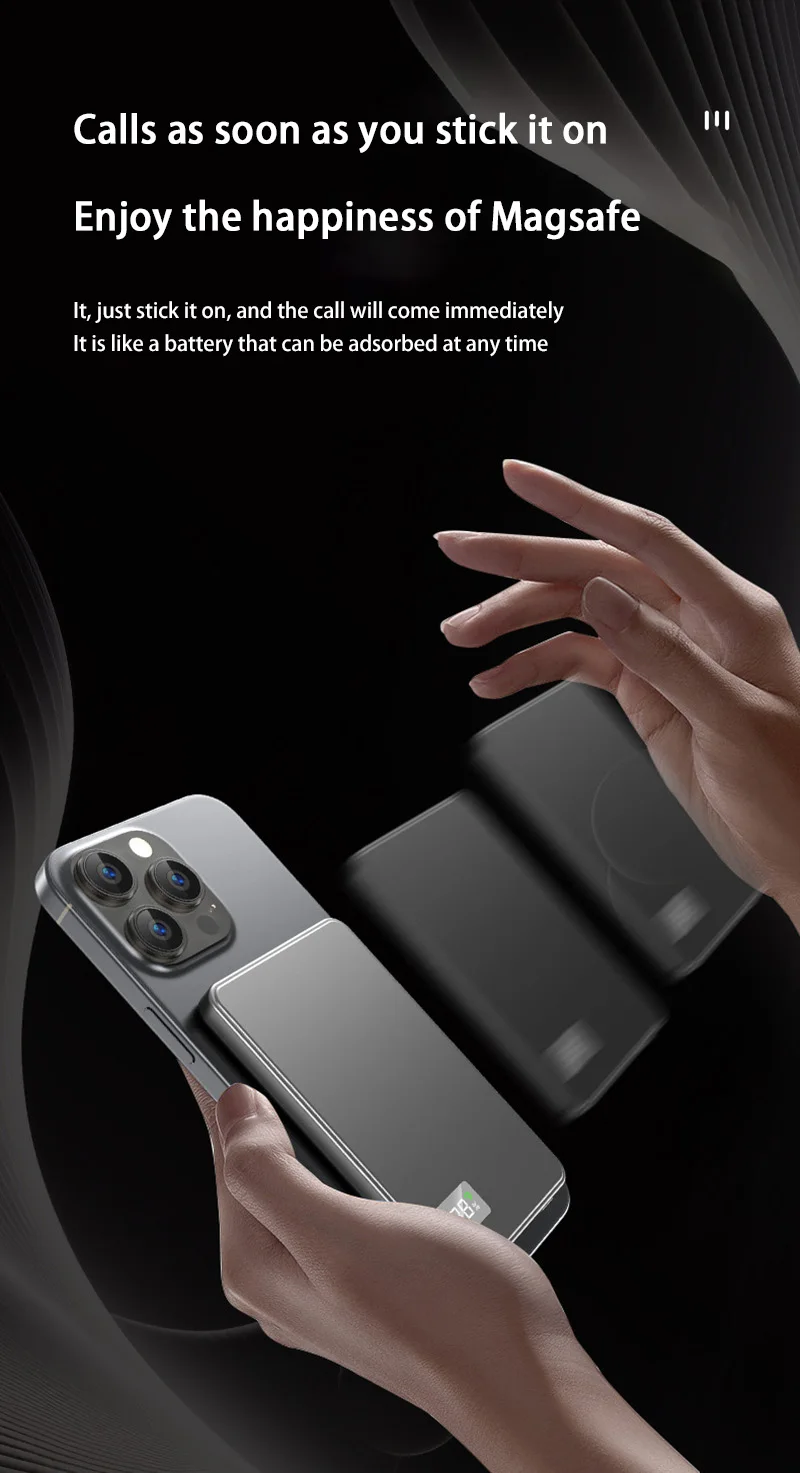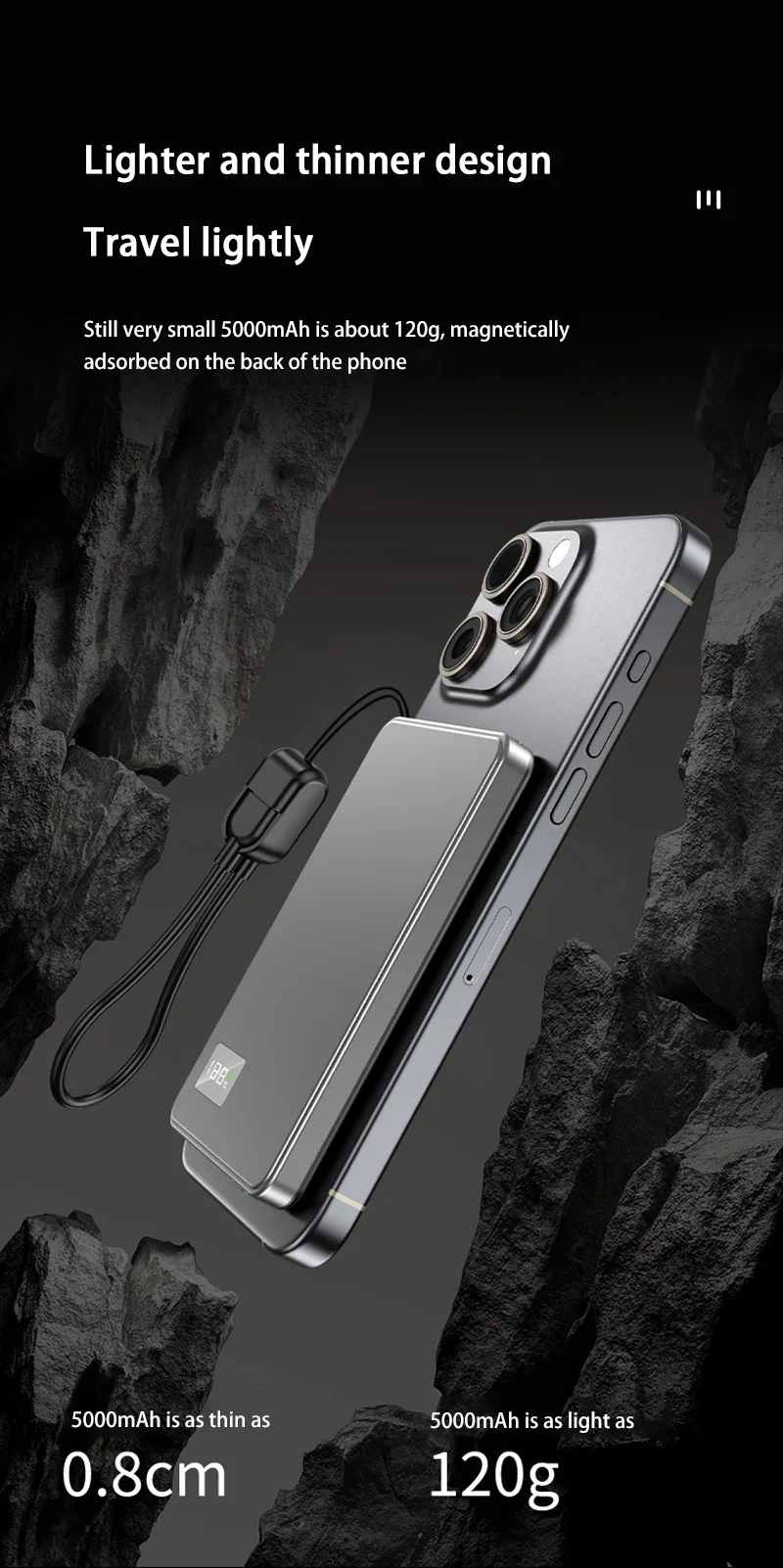 Delgada y ligera como alas, carga magnética instantánea | batería externa magnética ultradelgada